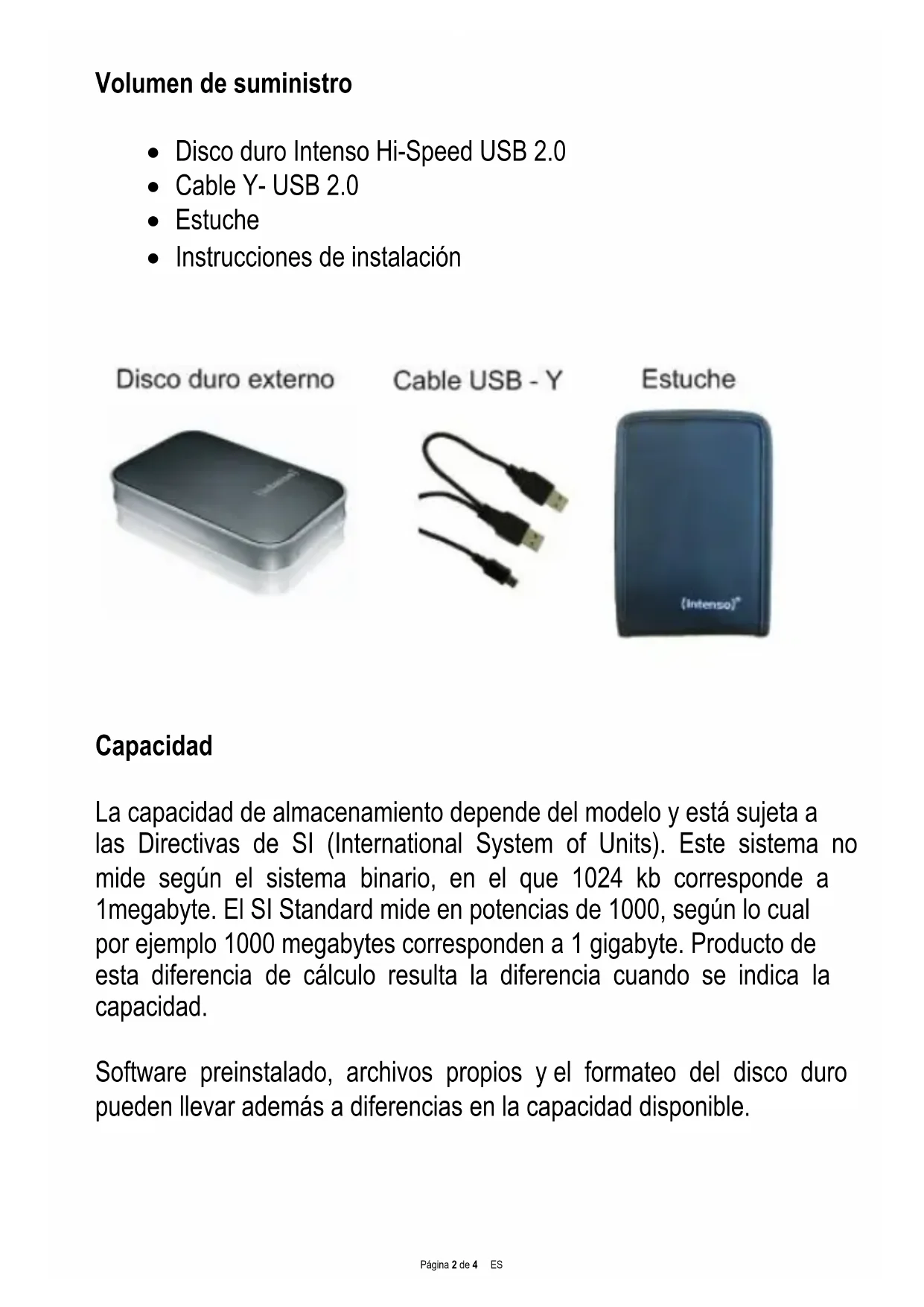 Para conectar el disco duro externo con sucomputed,utilice por favor el cable Y-USB que viene incluido. Conecte el enchufe miniUSB con el disco duro Intenso y también enchufes USB con sucomputed. Elcomputed reconoce el „Hardware nuevo“ e instalata automatically los drivers. Espere hasta que la instalacion de los drivers haya finalizzato. Ahora estaré disponible en „Mi PC“ unaunidad de disco con el nombre „Intenso".