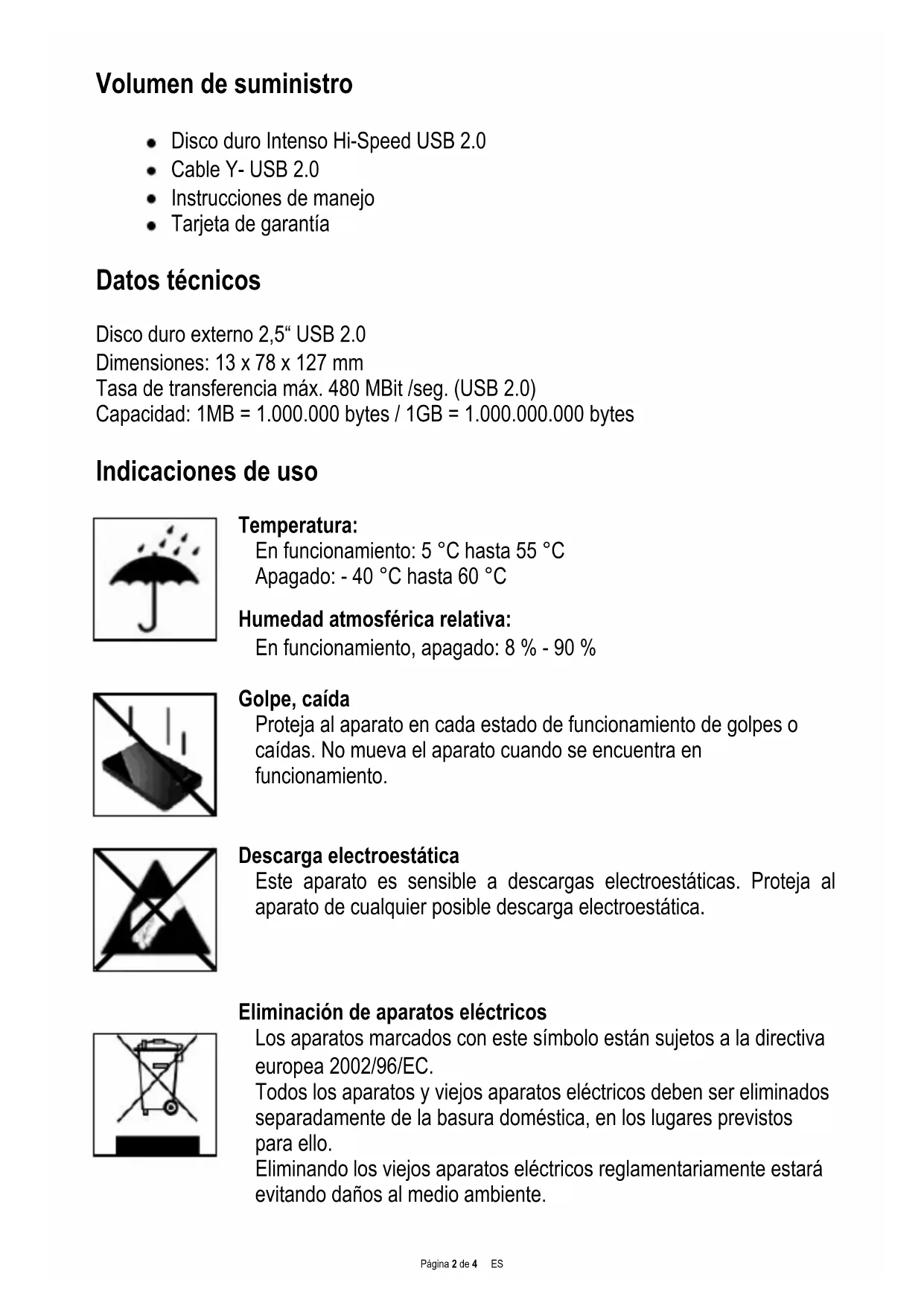 No existe derecho a garantía si no se siguen las instrucciones de uso de Intenso, asi como en caso de montaje o uso inadequado, o por daños producidos porthers aparatos defectuosos.