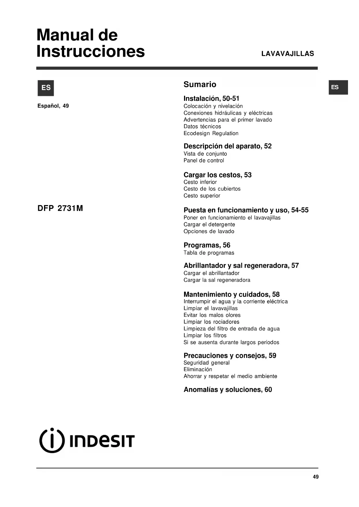 Encuentra gratis el manual del aparato DFP 2731M NX EU INDESIT en formato PDF.