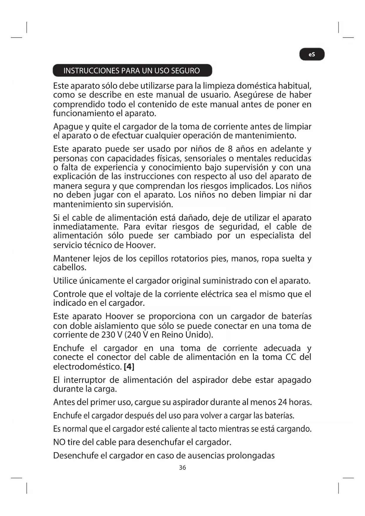 INSTRUCCIONES PARA UN USO SEGURO Este aparato sólo debe utilizarse para la limpieza doméstica habitual,
