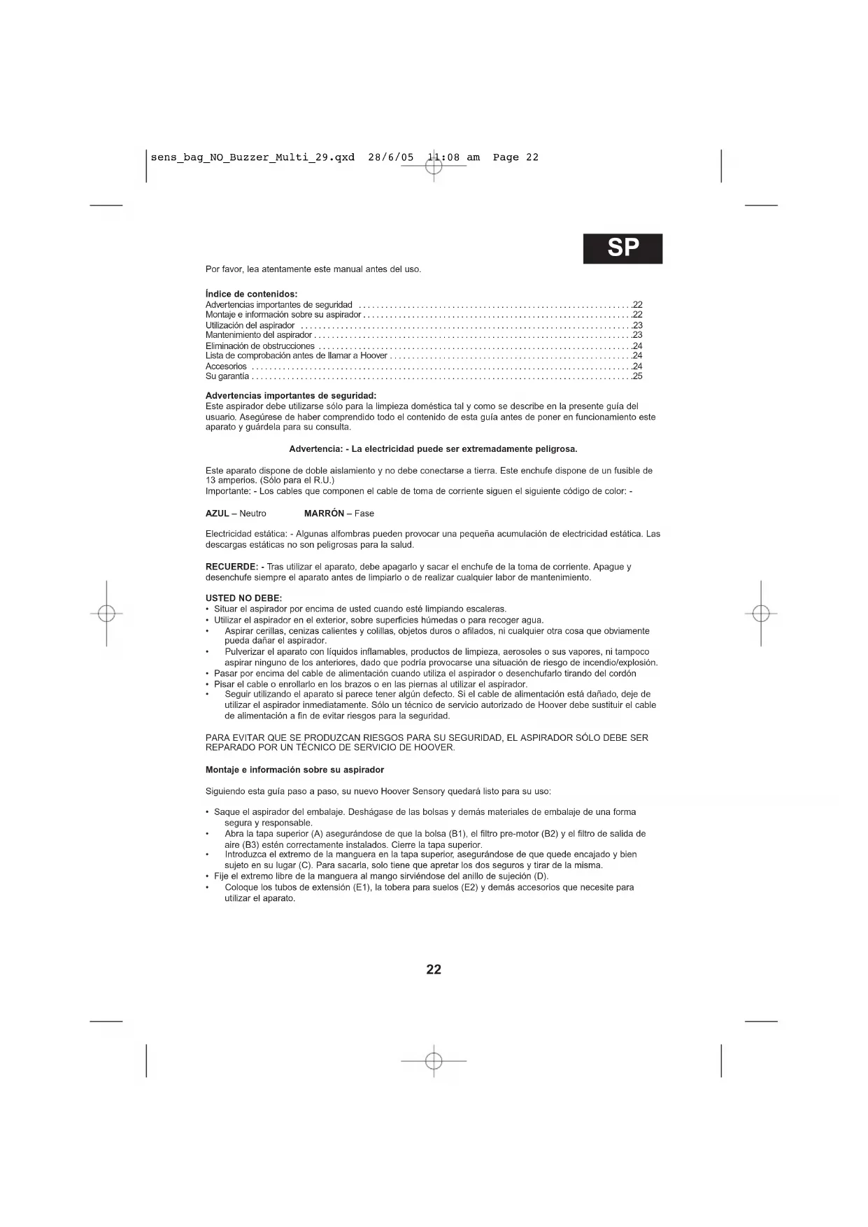 sens_bag_NO_Buzzer_Multi_29.qxd 28/6/05 11:08 am Page 22SP Utilización del aspirador