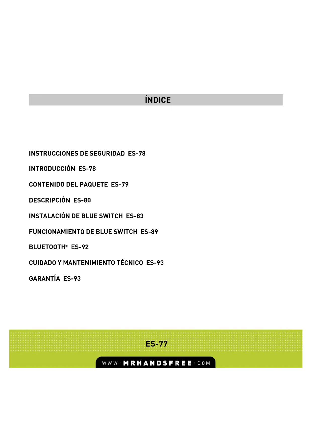 MANUAL DE USUARIO Blue Switch Pro MR HANDSFREE