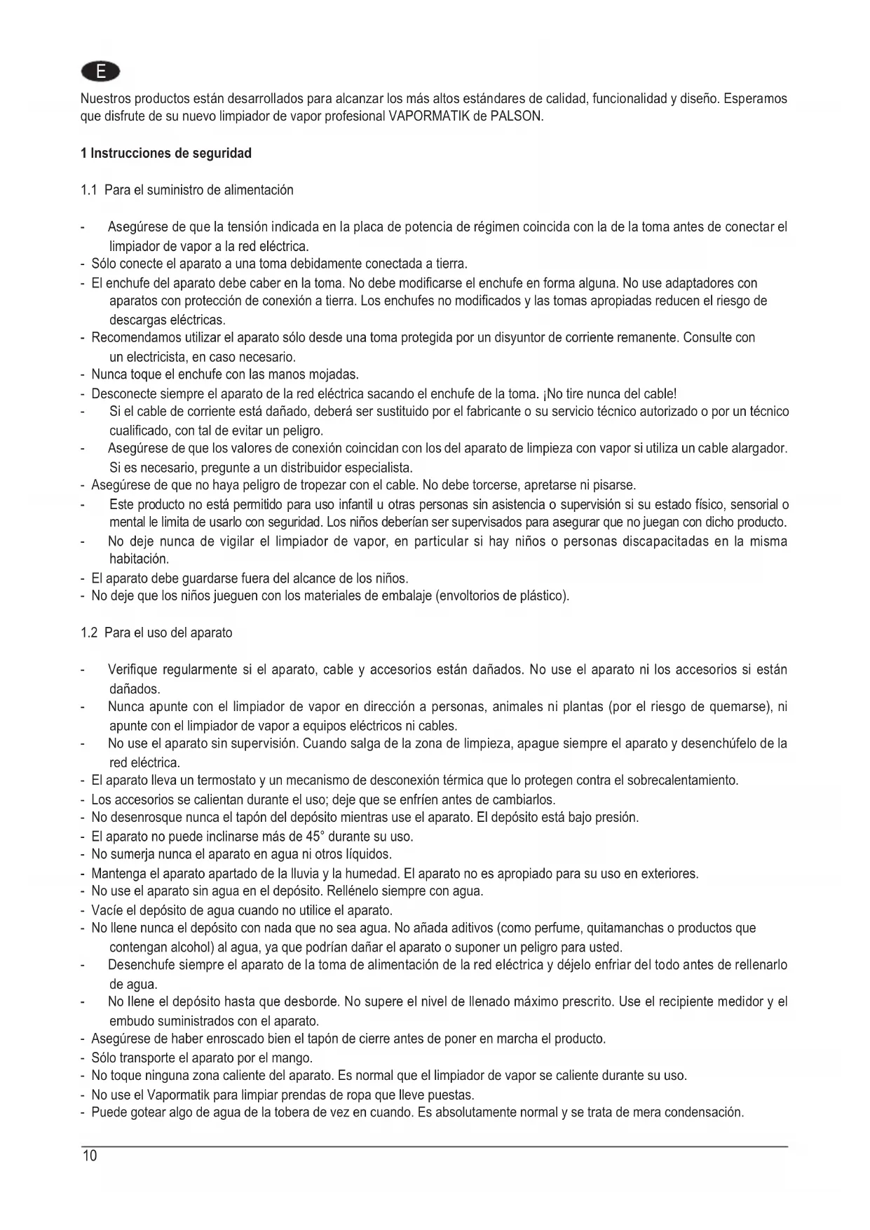 - Facilite siempre estas instrucciones de uso si deja el limpiador de vapor a otra persona.