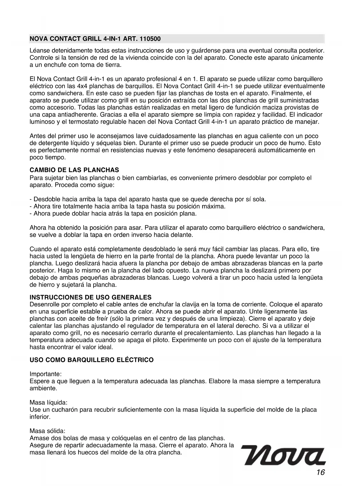 110500 - Parilla NOVA - Manual de uso y guía de instrucciones gratis
