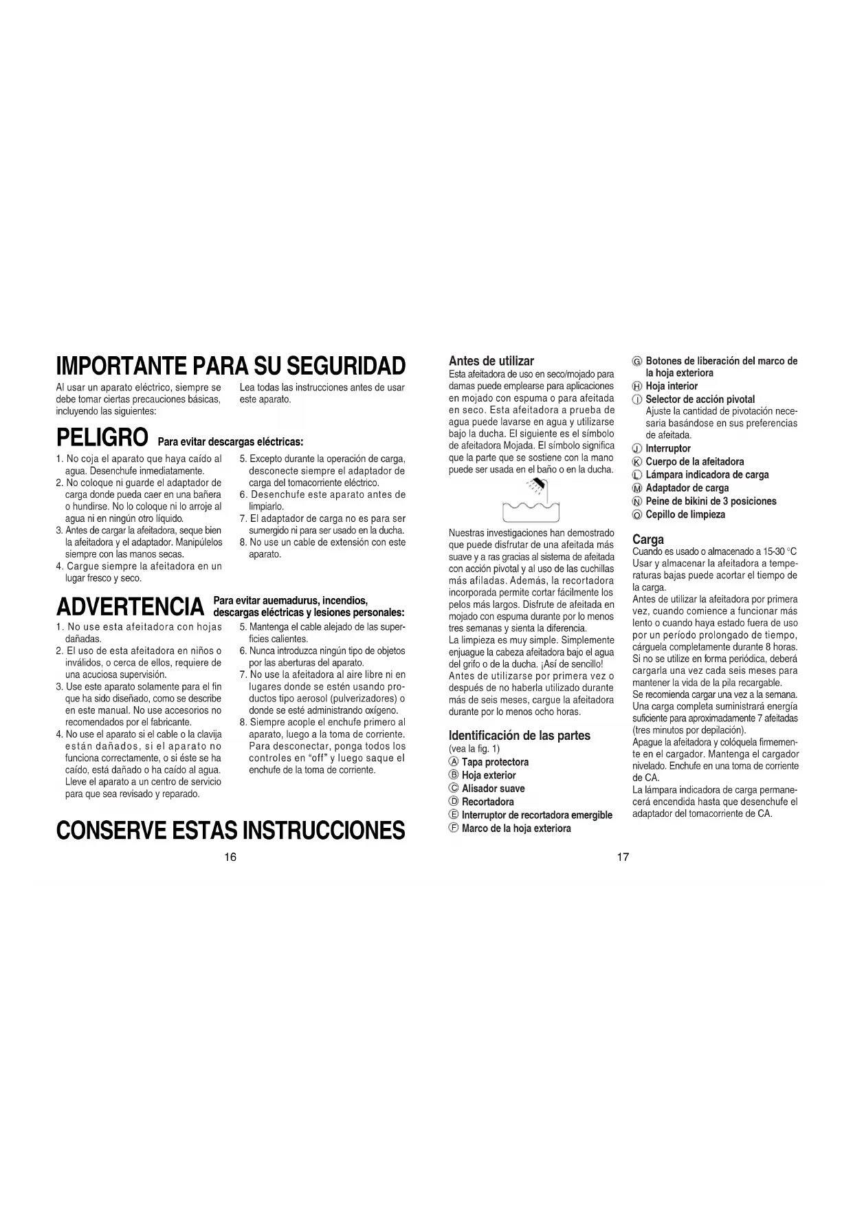 1. No use esta afeitadora con hojas