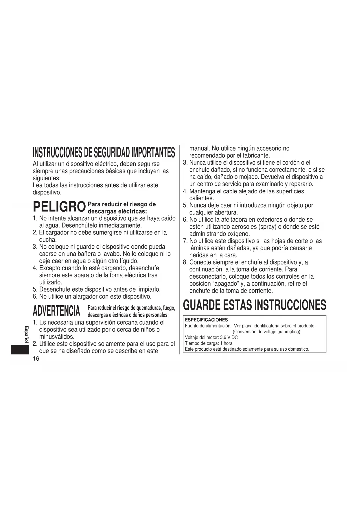 afeitadora. Podría causar fuego o descargas eléctricas. Reemplácela en