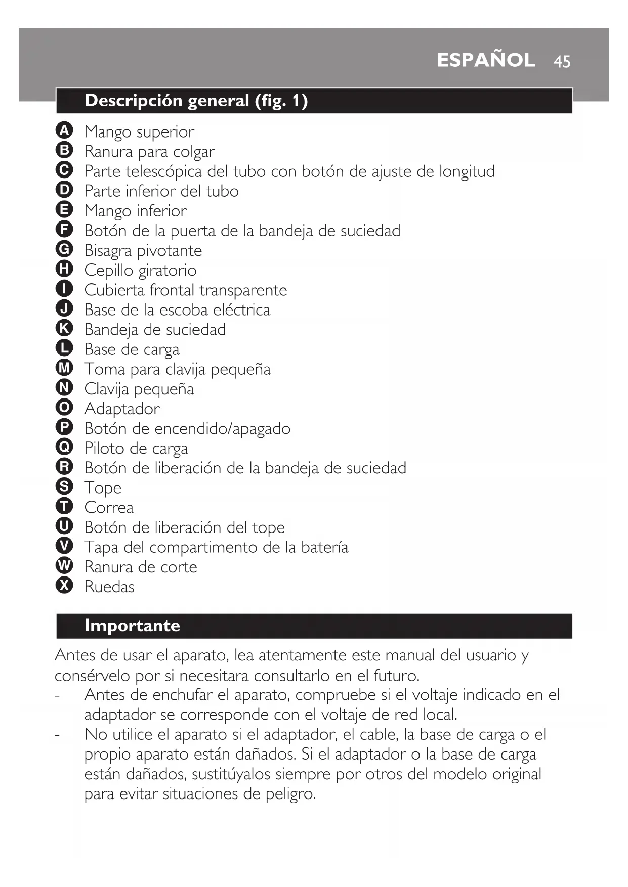 ESPAÑOL462 Antes de usar el aparato por vez primera, cárguelo durante al