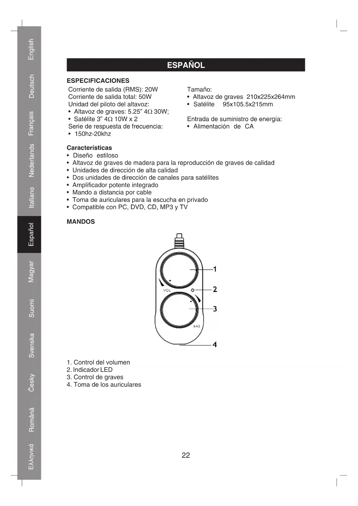 - Compatible con PC, DVD, CD, MP3 y TV MANDOS