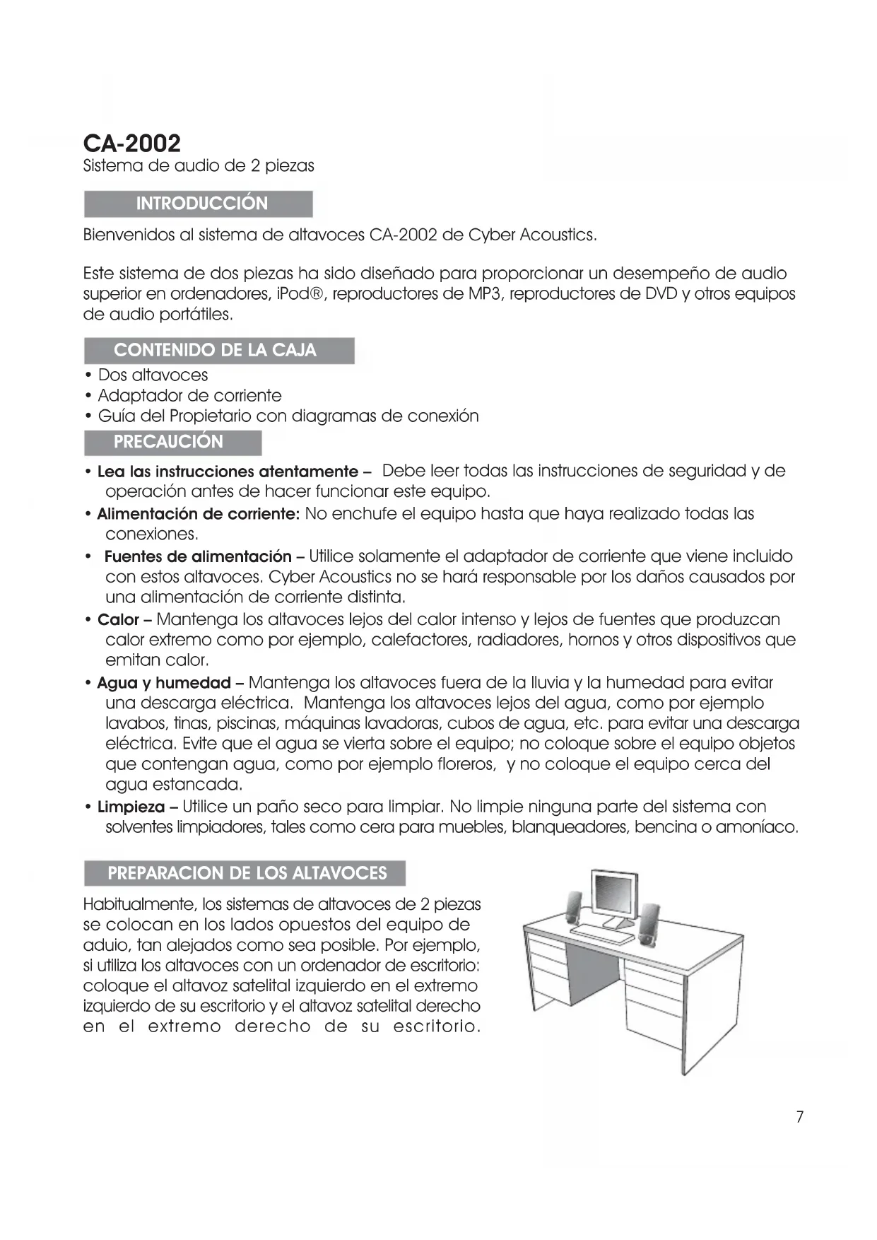 Encuentra gratis el manual del aparato CA2002 Cyber Acoustics en formato PDF.