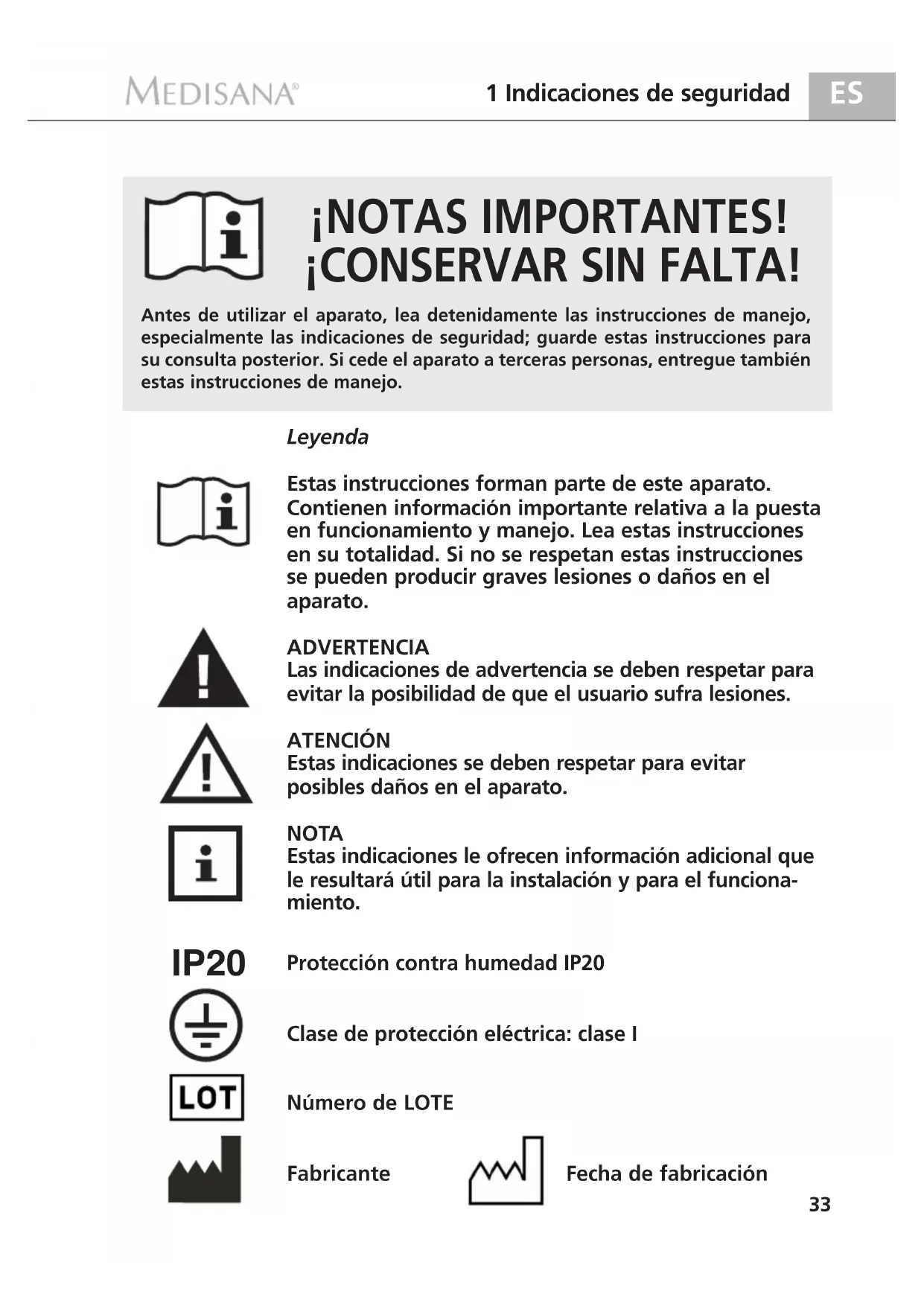 - Con relacion a los productos de MEDISANA, se offers a garantía por un periodo de tres años a partir de la Fecha de compra. En caso de una reclamación, la Fecha de compra debe probarse mediante el recibo de compra o la factura.