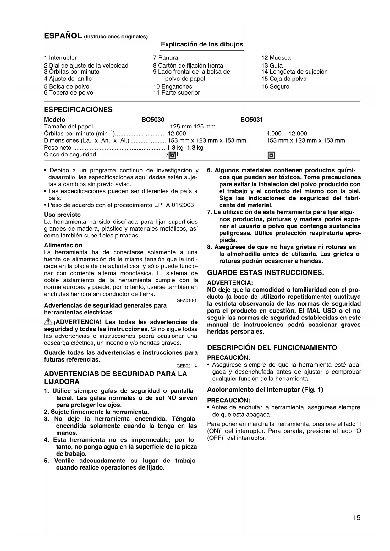 Descarga las instrucciones para tu Lijadora en formato PDF gratis! Encuentra tus instrucciones BO5030 - MAKITA y toma tu dispositivo electrónico nuevamente en la mano. En esta página están publicados todos los documentos necesarios para el uso de su dispositivo. BO5030 de la marca MAKITA.