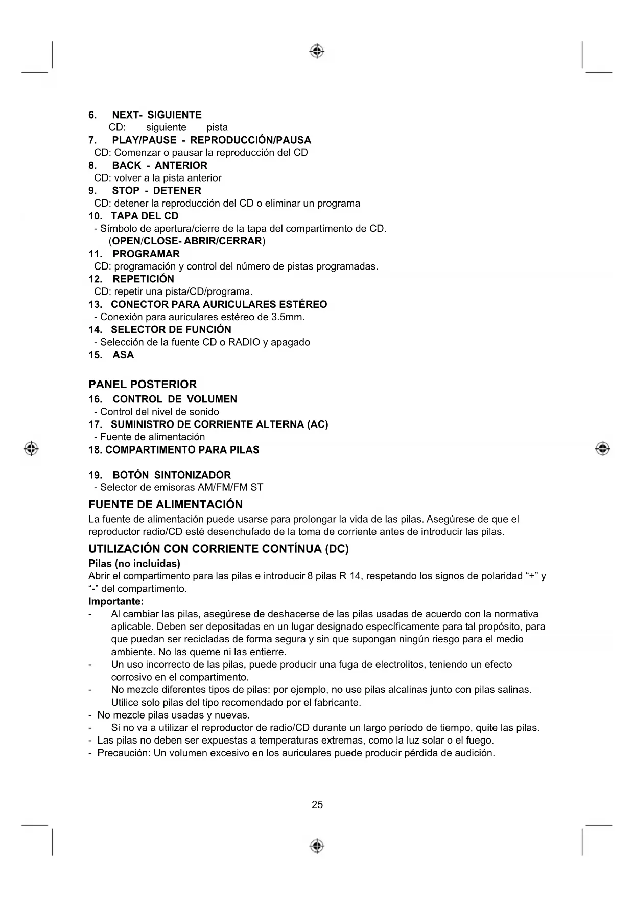 MANUAL DE USO (p.24) Reproductor de Radio/CD