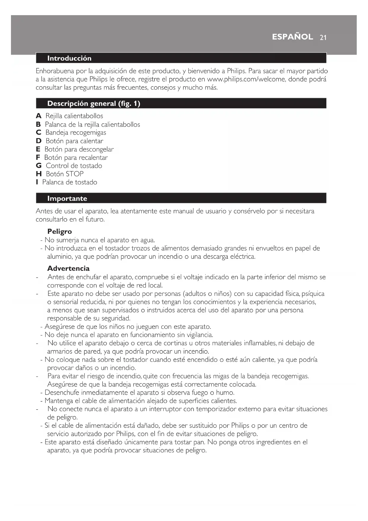 - Este aparato está diseñado únicamente para tostar pan. No ponga otros ingredientes en el