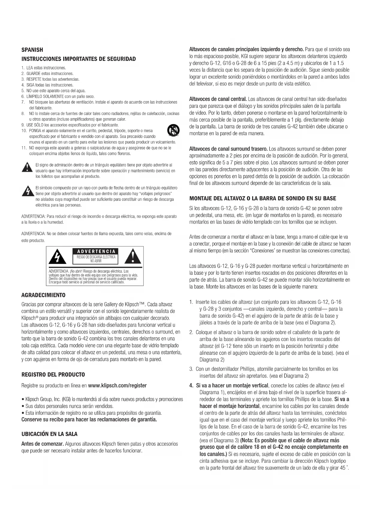 AGRADECIMIENTO Gracias por comprar altavoces de la serie Gallery de Klipsch™. Cada altavoz
