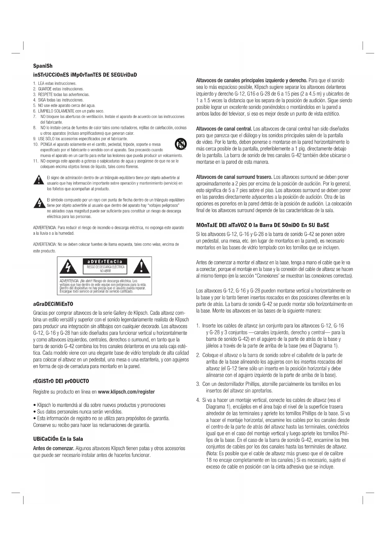 aGradECiMiEntO Gracias por comprar altavoces de la serie Gallery de Klipsch. Cada altavoz com-