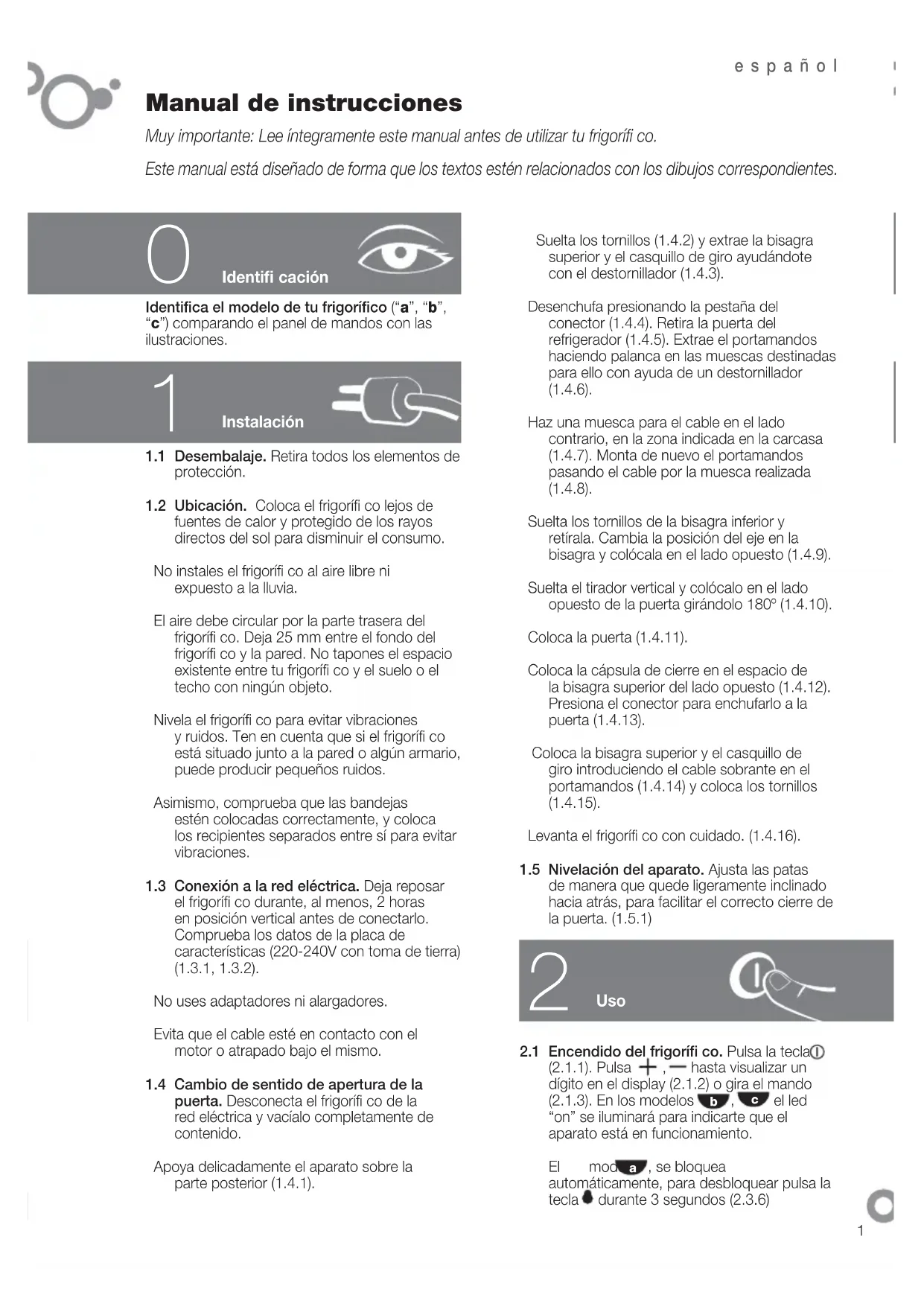 Identifi ca el modelo de tu frigorífi co (“a”, “b”,