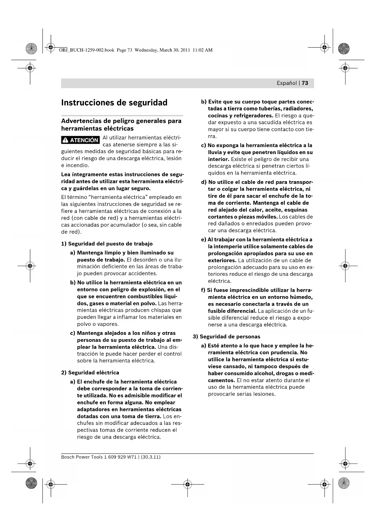 OBJ_BUCH-1259-002.book Page 72 Wednesday, March 30, 2011 11:02 AMEspañol | 73 Bosch Power Tools 1 609 929 W71 | (30.3.11) es