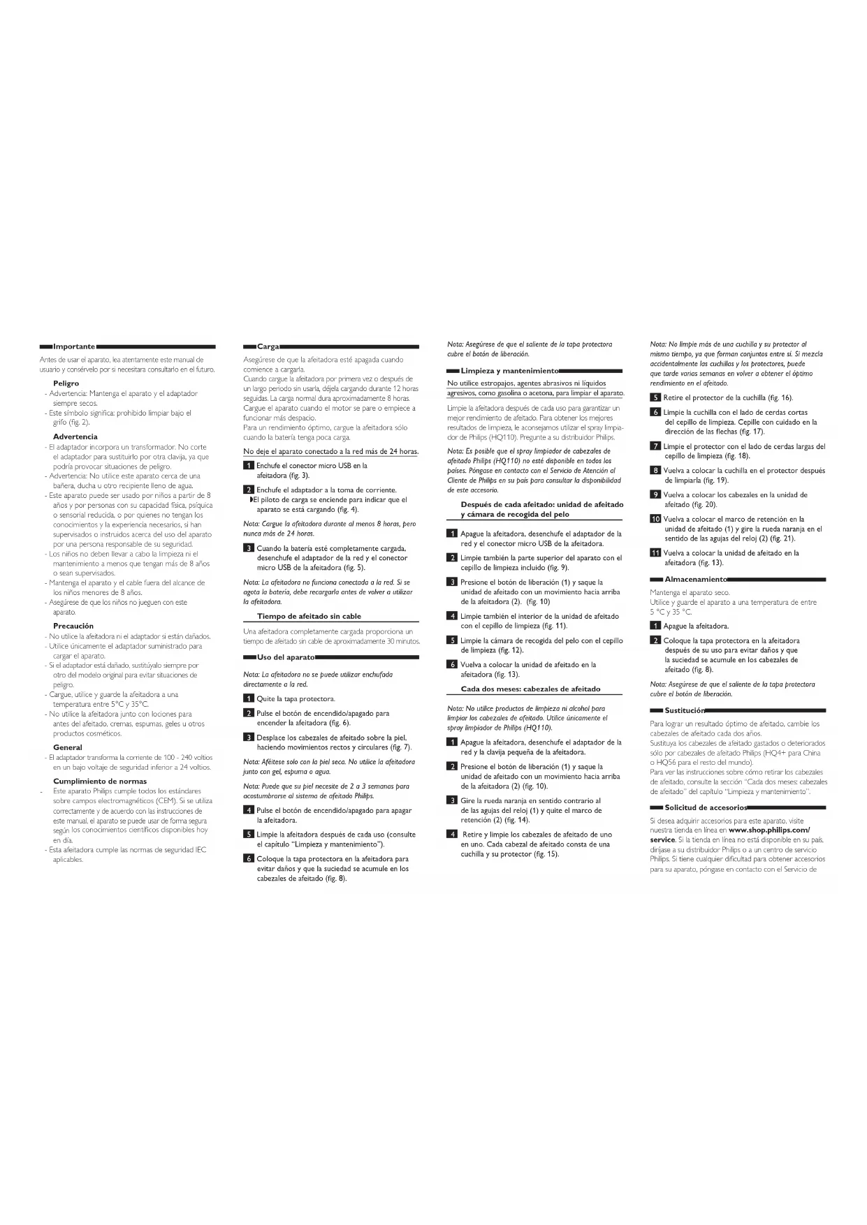 Descarga las instrucciones para tu Navaja en formato PDF gratis! Encuentra tus instrucciones PQ225 - PHILIPS y toma tu dispositivo electrónico nuevamente en la mano. En esta página están publicados todos los documentos necesarios para el uso de su dispositivo. PQ225 de la marca PHILIPS.