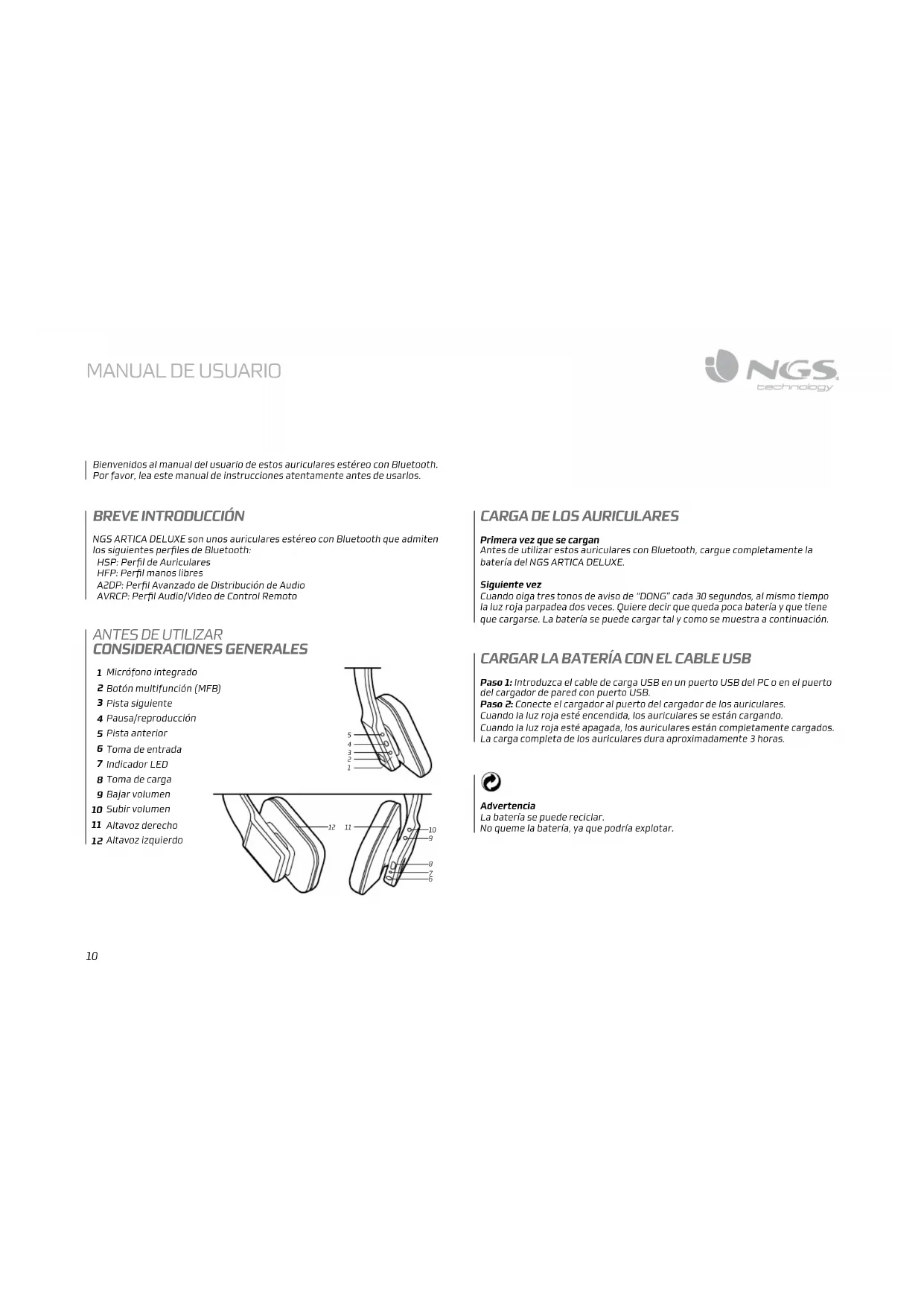 White Artica Deluxe - Ecouteur NGS - Manual de uso y guía de instrucciones gratis