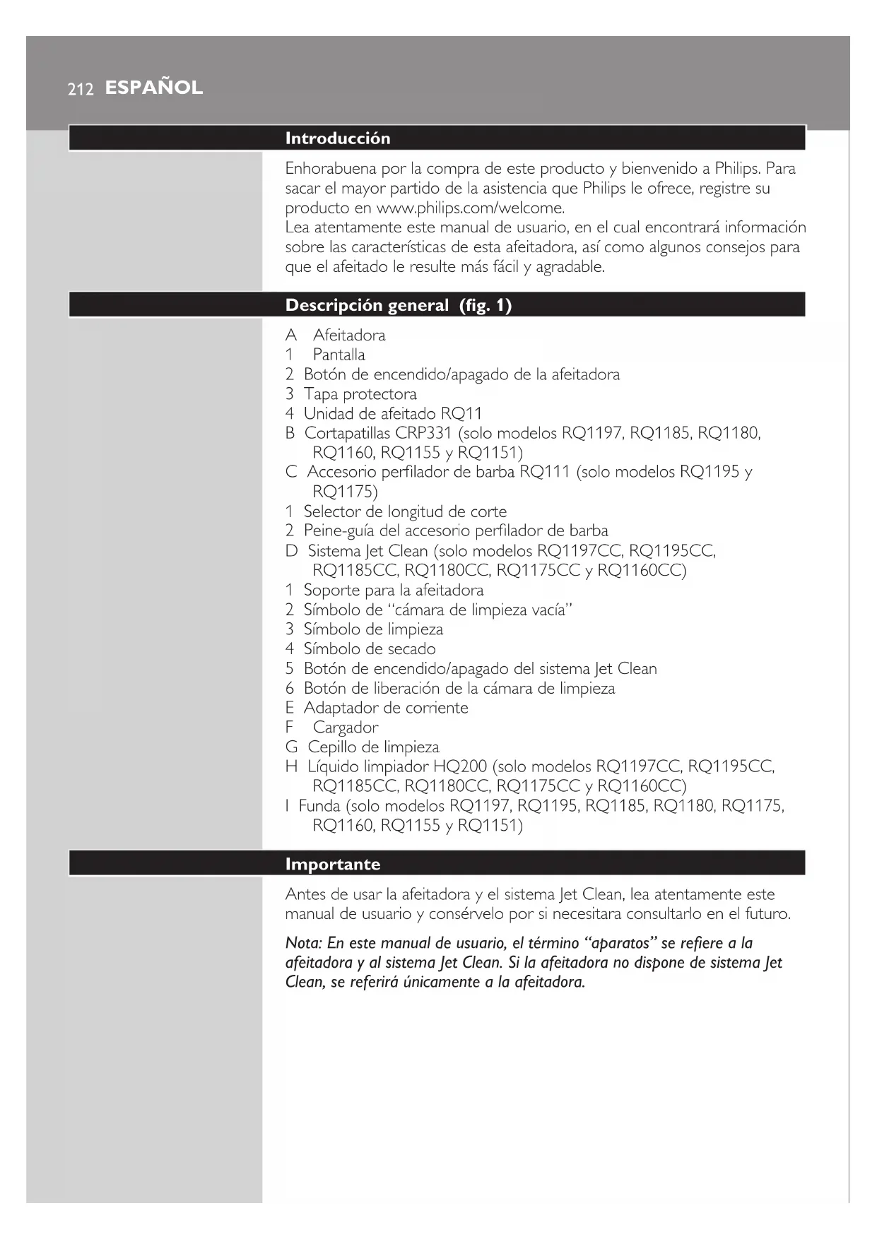 Antes de usar la afeitadora y el sistema Jet Clean, lea atentamente este