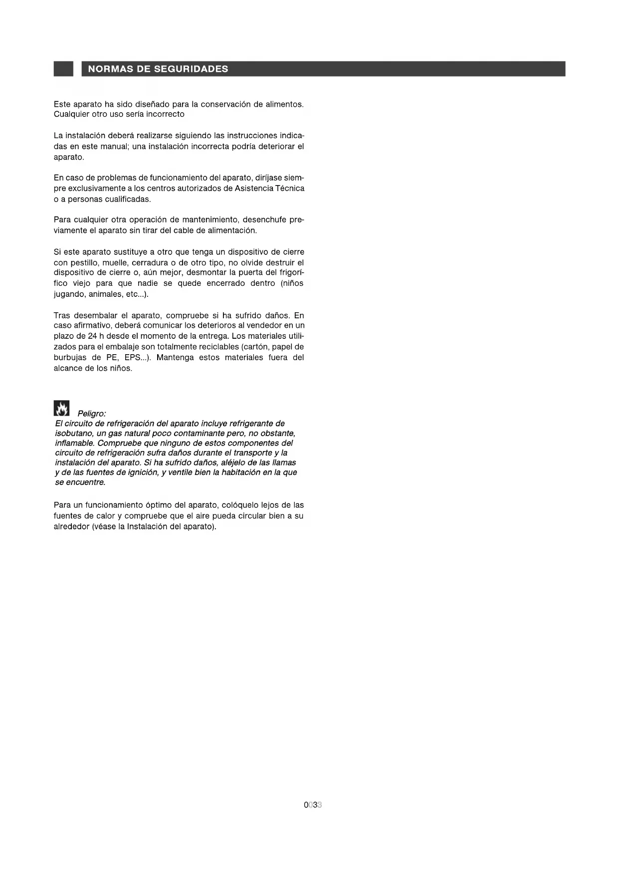 INSTALACIÓN PPRROOTTEECCCCIIÓÓNN DDEELL MMEEDDIIOO AAMMBBIIEENNTTEE Este aparato no contiene, en su circuito refrigerante y sus materiasaislantes, ningún gas refrigerante nocivo para la capa de ozono. Nodebe ser desechado con los residuos urbanos y la chatarra para nodañar el circuito refrigerante. Consulte con su ayuntamiento paraque le informe sobre la recogida de este tipo de aparatos.0044ALLATION DDEESSCCRRIIPPCCIIÓÓNN DDEELL AAPPAARRAATTOO