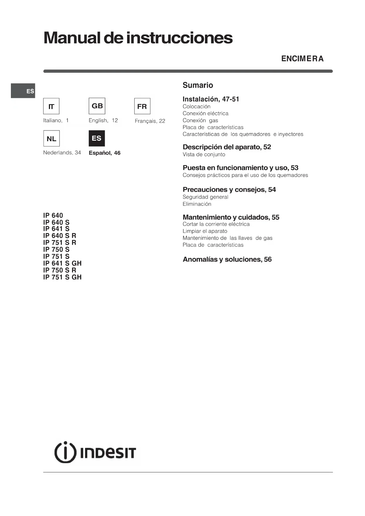 IP 751 S AV R - Cocina INDESIT - Manual de uso y guía de instrucciones gratis