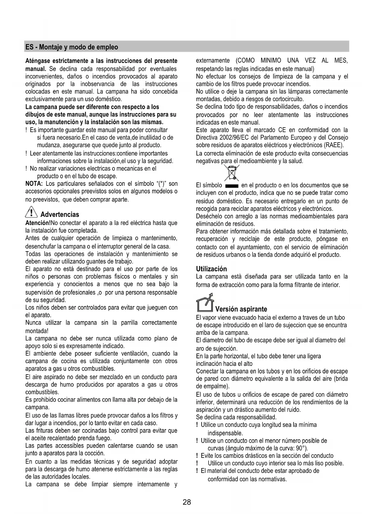 colocadas en este manual. La campana ha sido concebida