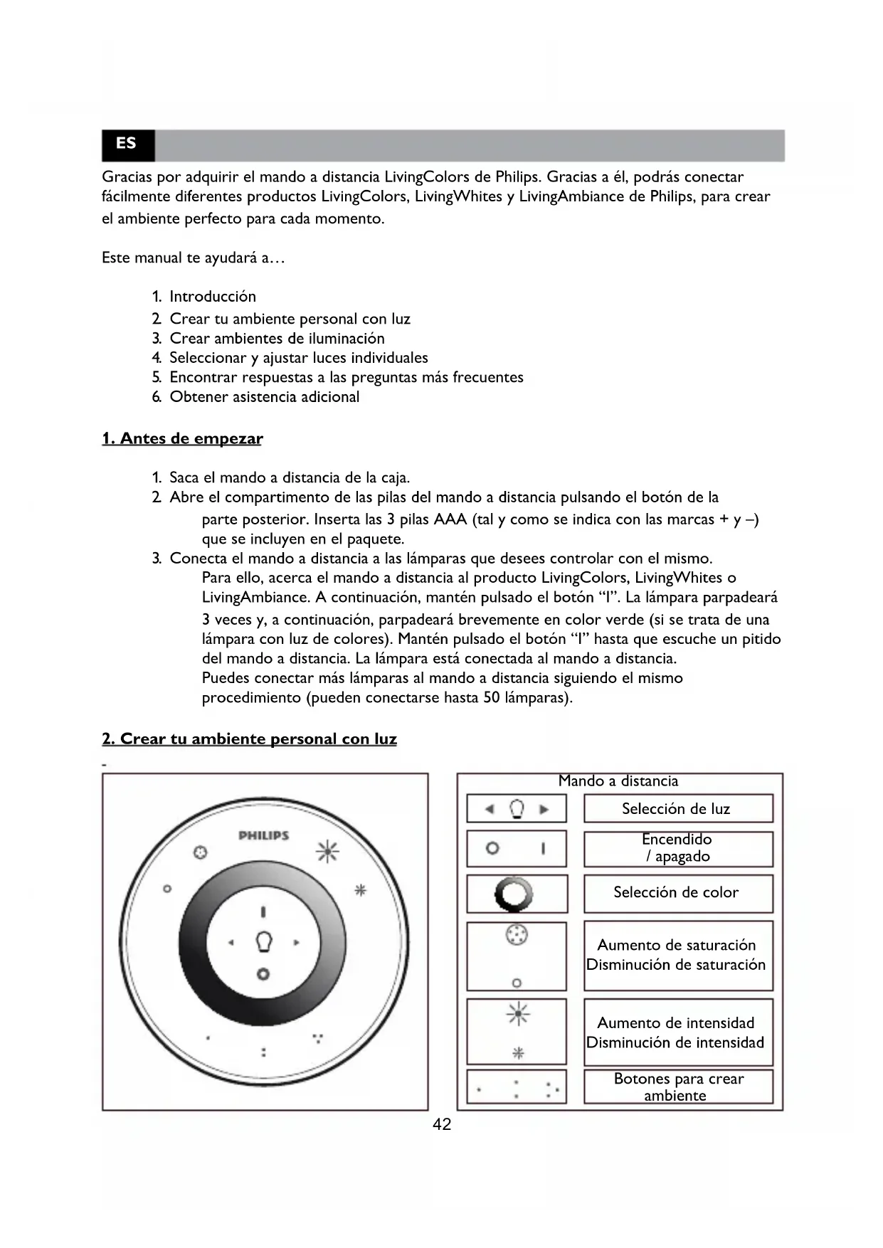 ES Gracias por adquirir el mando a distancia LivingColors de Philips. Gracias a él, podrás conectar
