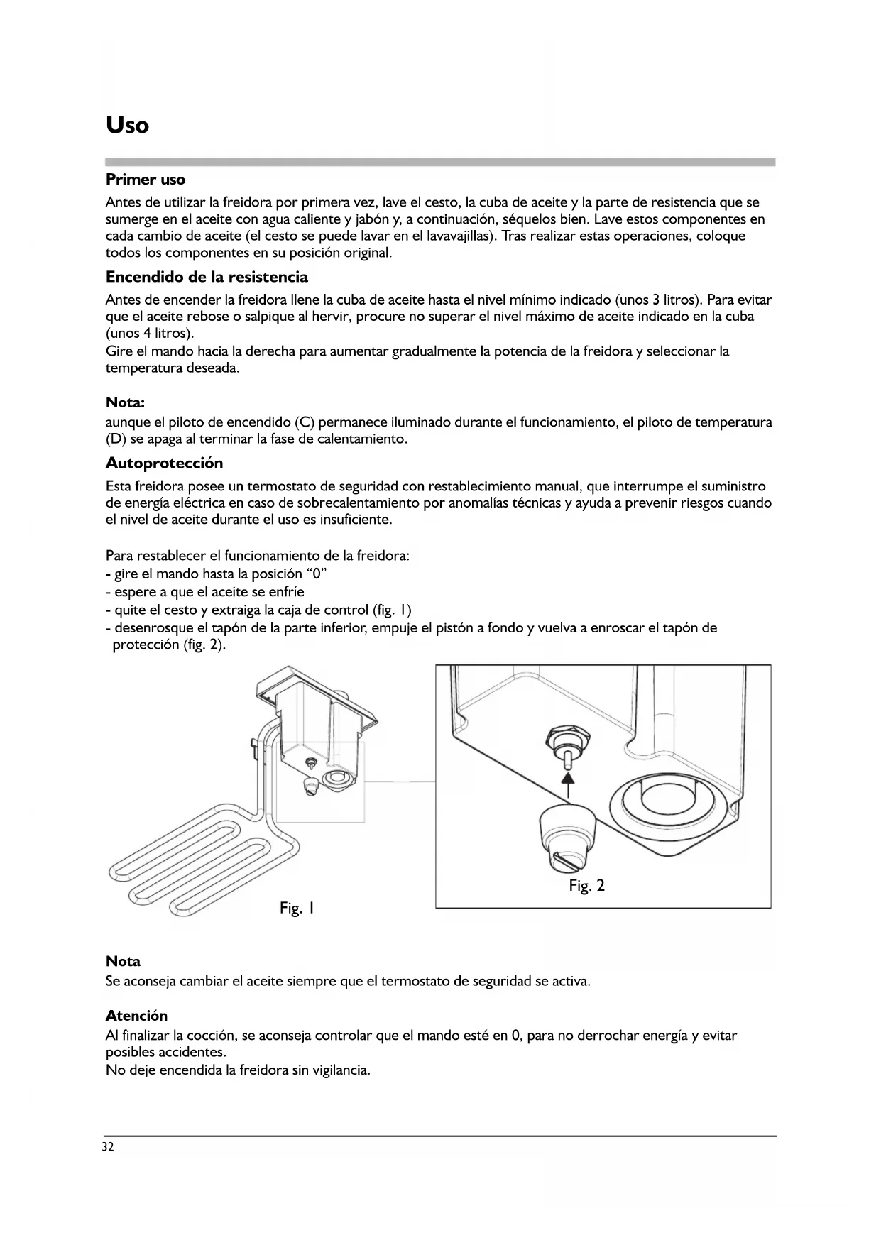 Esta freidora posee un termostato de seguridad con restablecimiento manual, que interrumpe el suministro