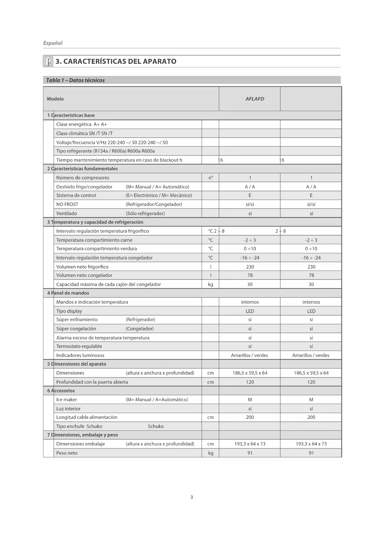 Temperatura compartimiento carne °C -2 ÷ 3 -2 ÷ 3