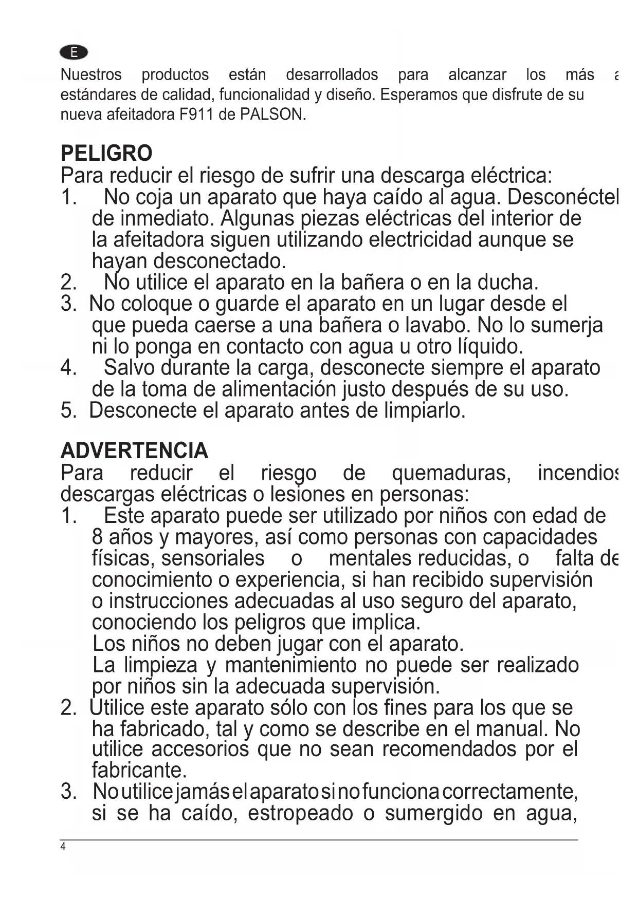 Encuentra gratis el manual del aparato F911 PALSON en formato PDF.