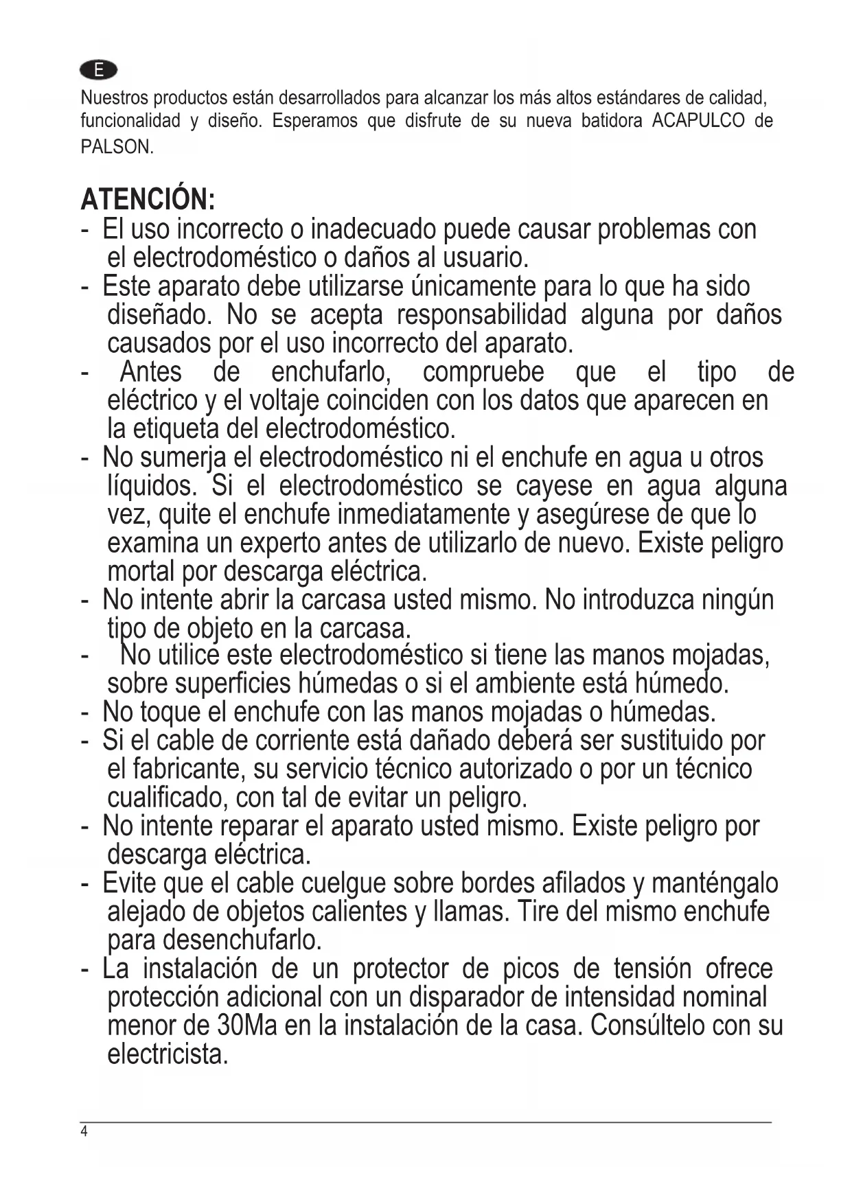Acapulco - Licuadora PALSON - Manual de uso y guía de instrucciones gratis