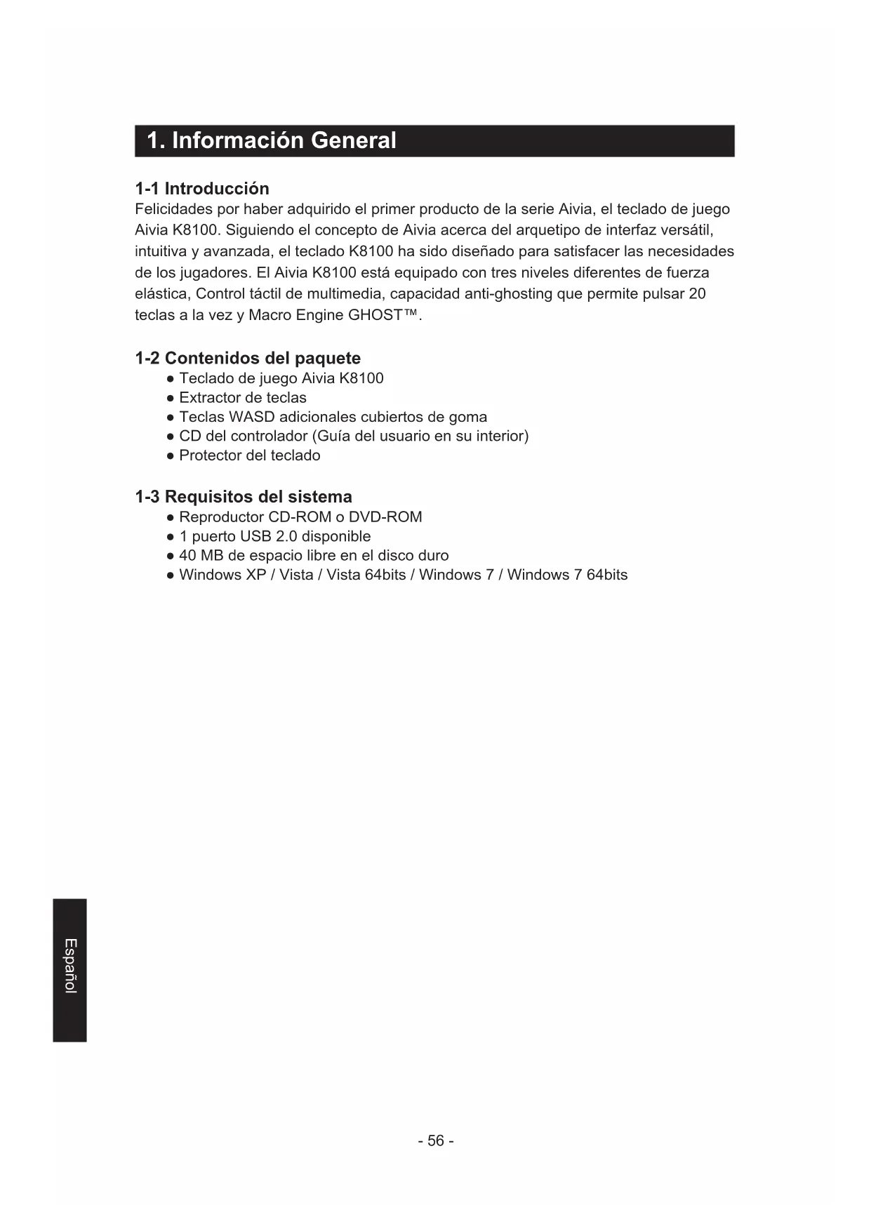 Felicidades por haber adquirido el primer producto de la serie Aivia, el teclado de juego