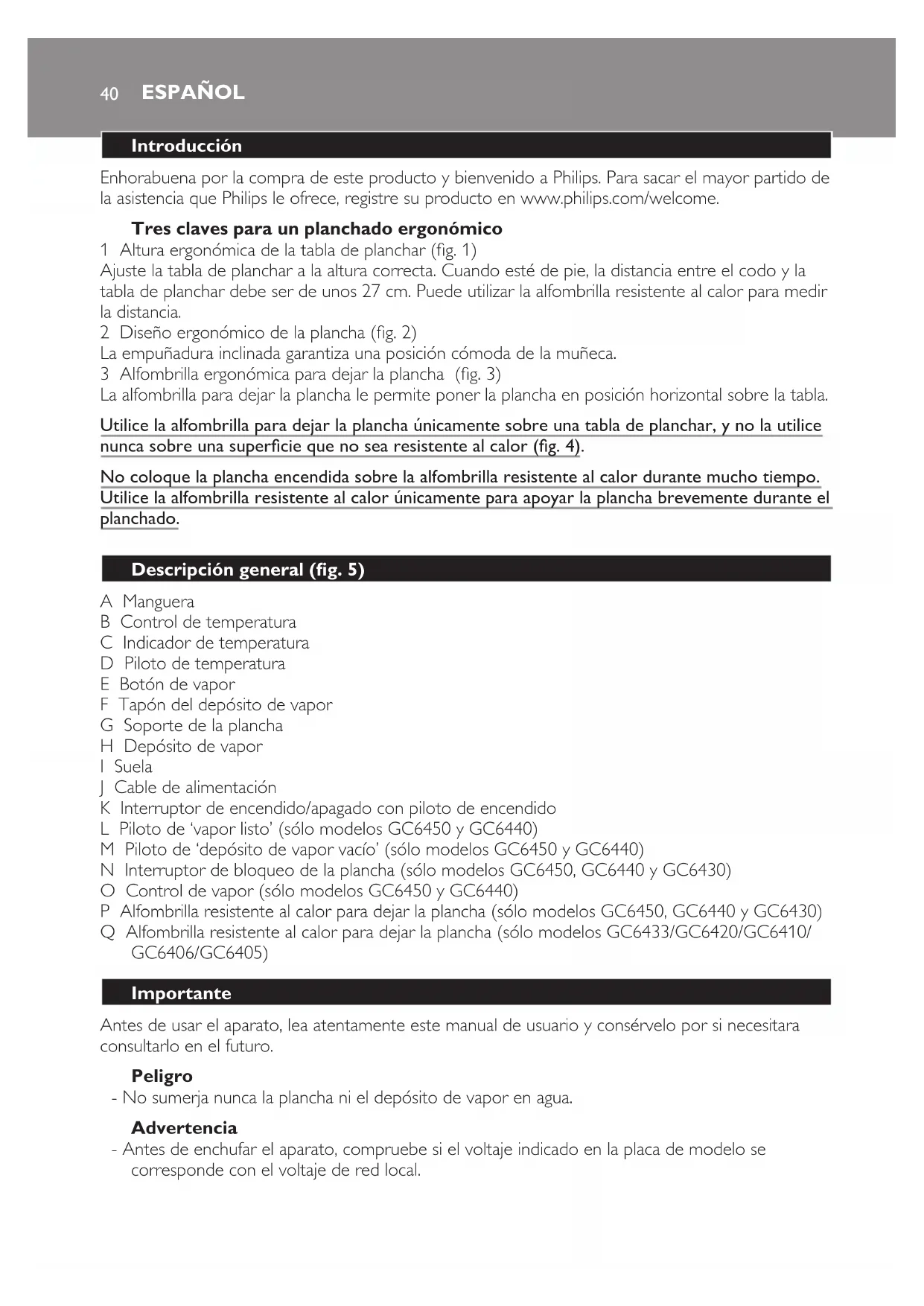 MANUAL DE USUARIO 6400 series GC6410 PHILIPS