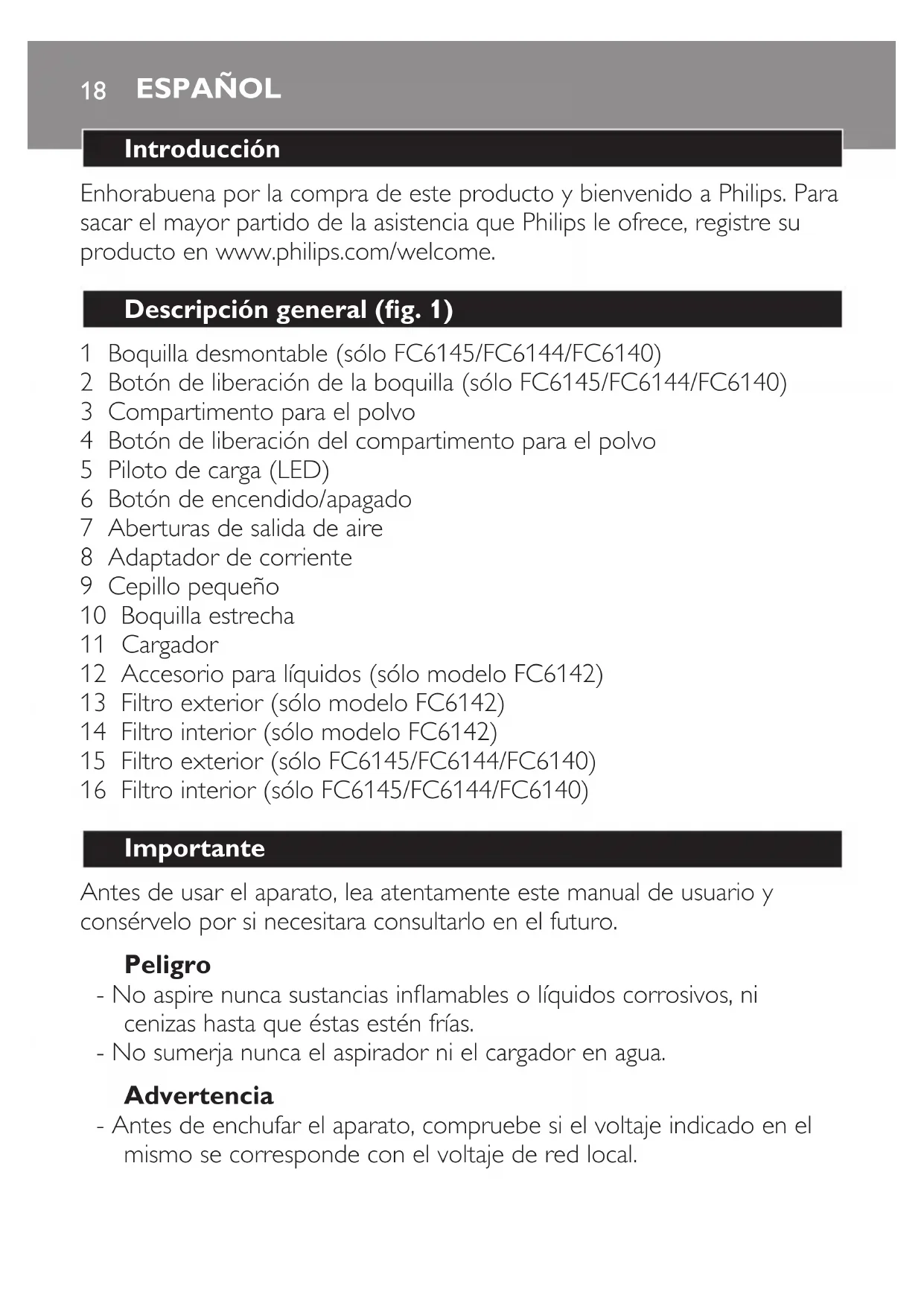 MANUAL DE USUARIO MiniVac FC6145 PHILIPS