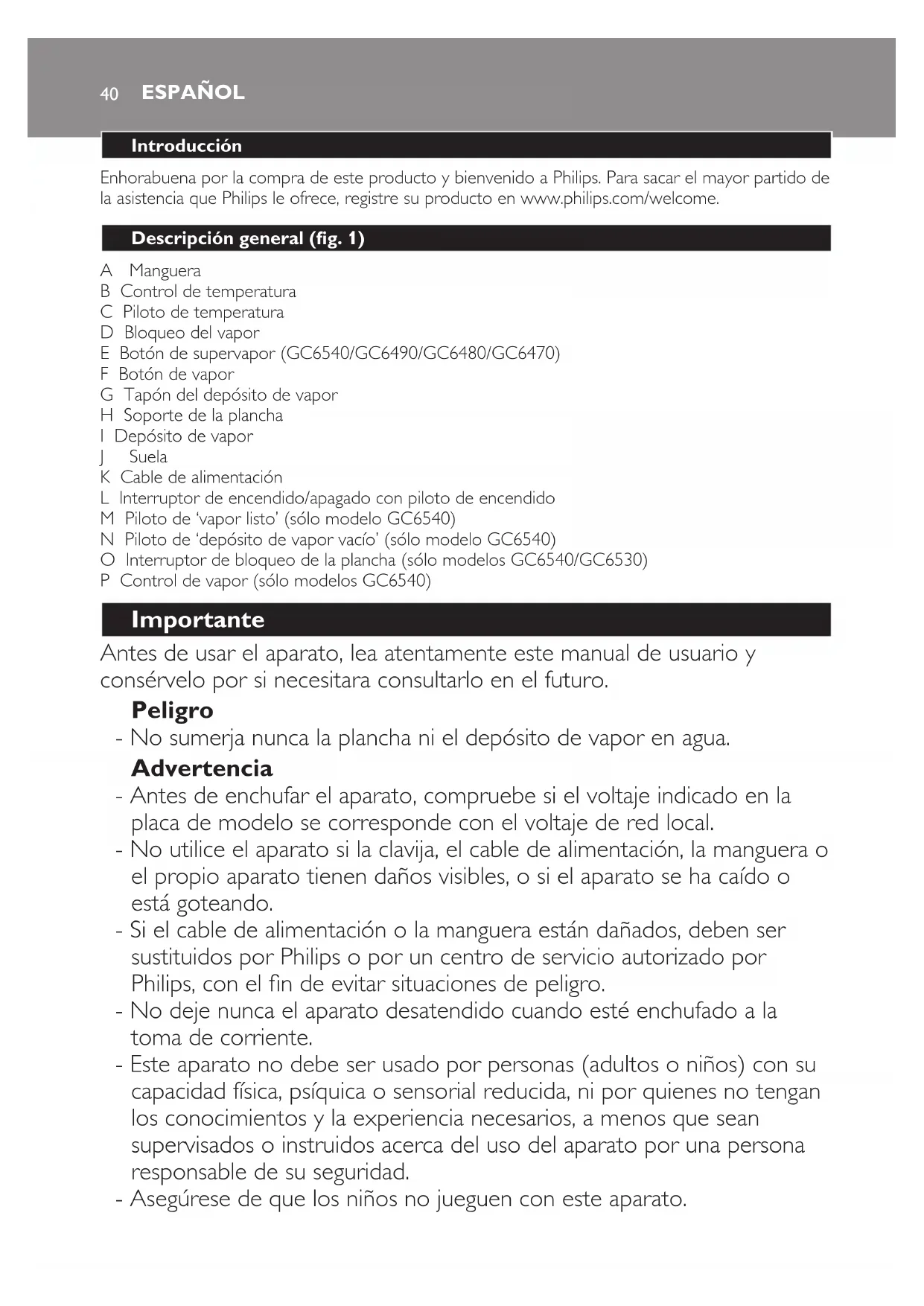 MANUAL DE USUARIO CompactCare GC6470 PHILIPS