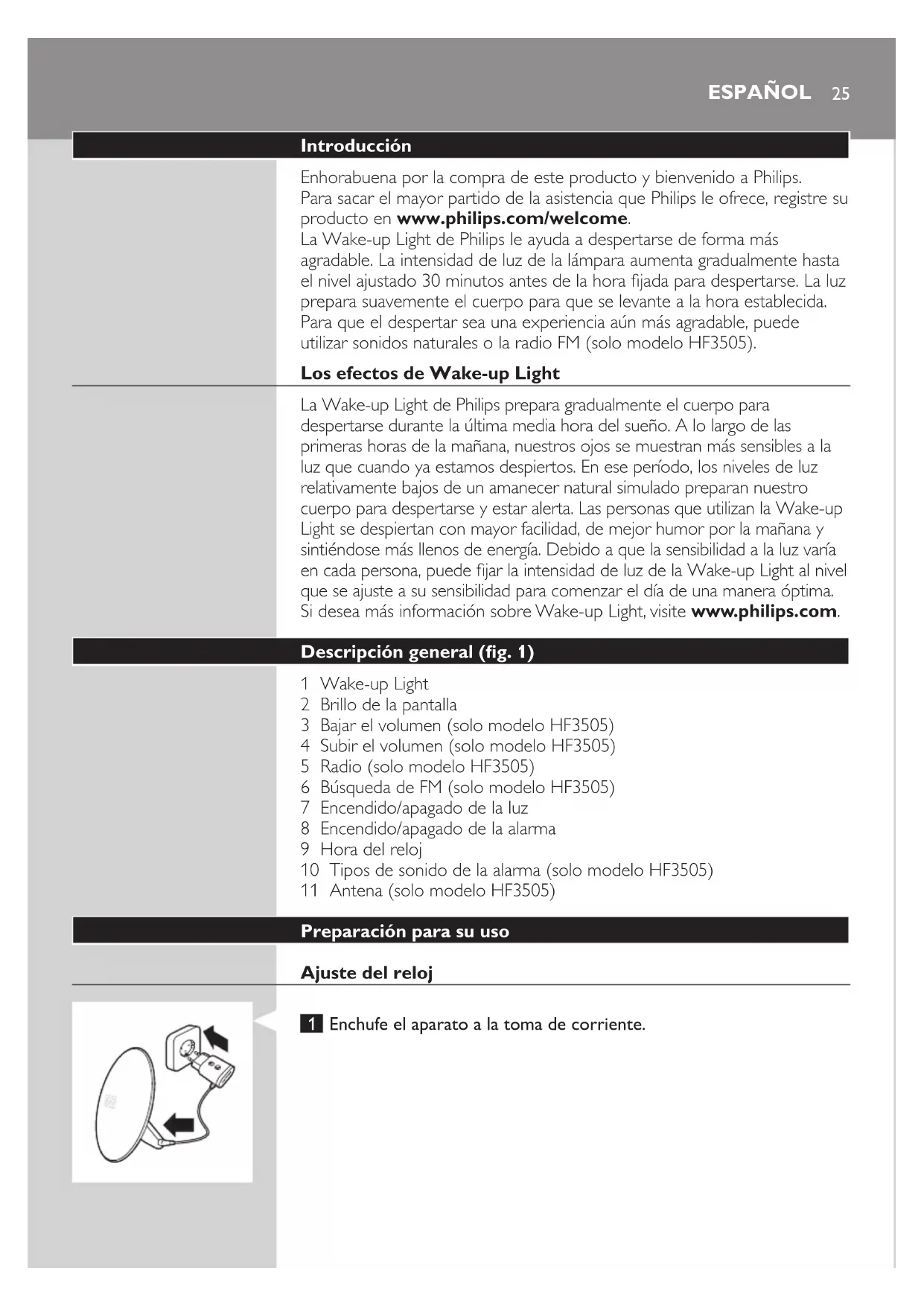 MANUAL DE USUARIO Wakeup Light HF3500 PHILIPS