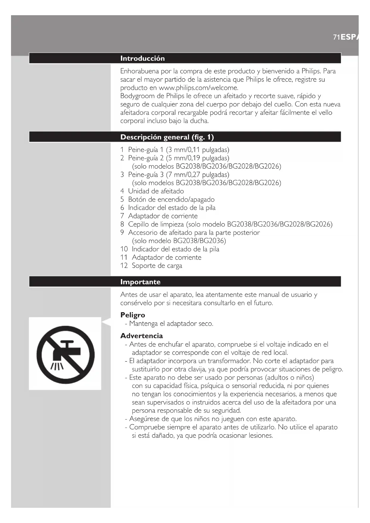 Encuentra gratis el manual del aparato Bodygroom Series 3000 BG2026 PHILIPS en formato PDF.