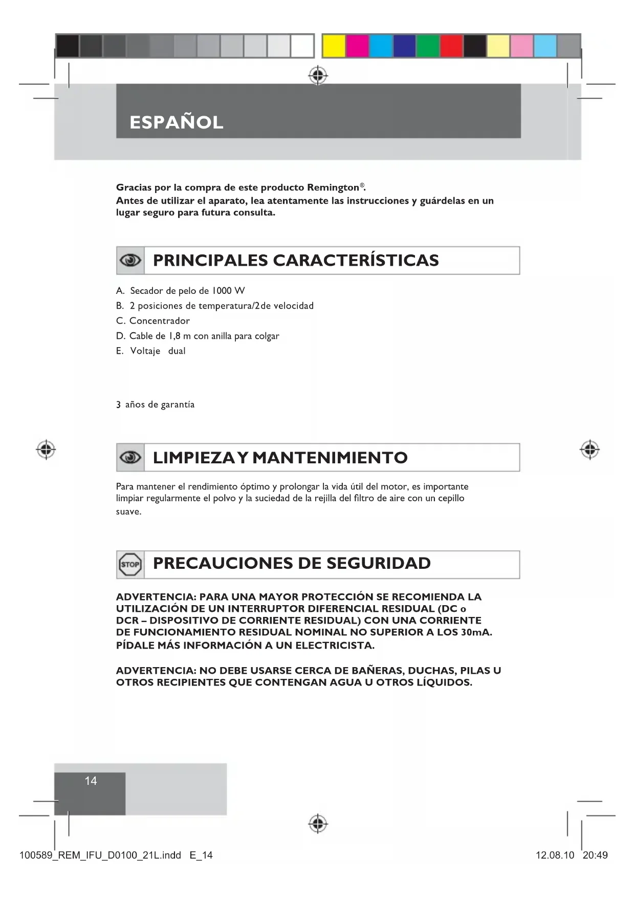 D0100 - Secador de pelo REMINGTON - Manual de uso y guía de instrucciones gratis