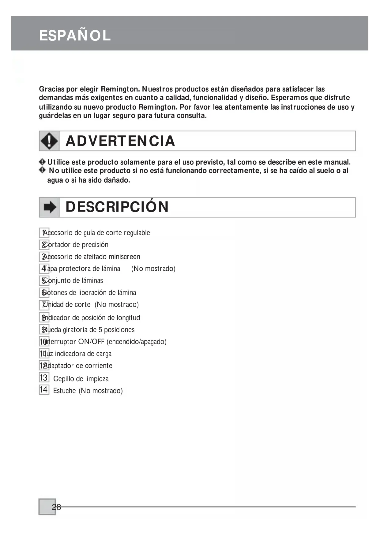 Gracias por elegir Remington. Nuestros productos están diseñados para satisfacer las
