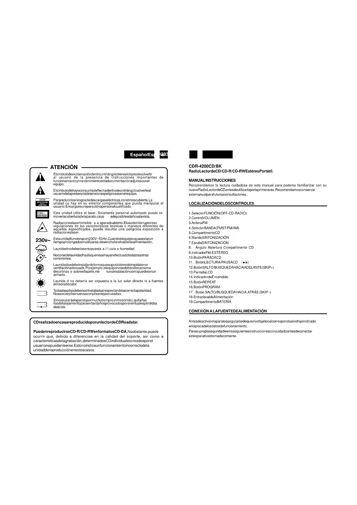 MANUAL DE USUARIO CDR4200CDBK ROADSTAR