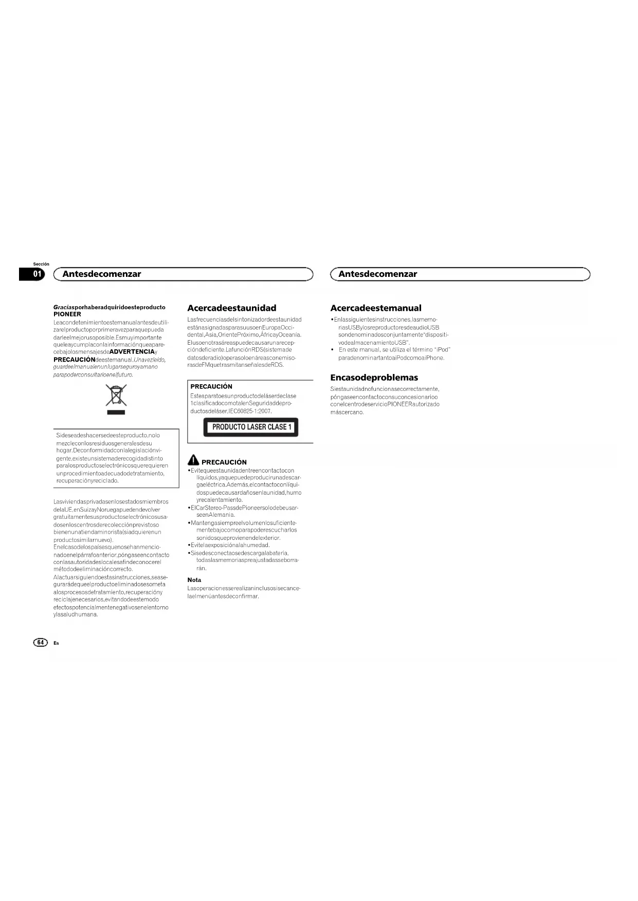 PRECAUCIÓN Pioneer no asume ninguna responsabilidad por