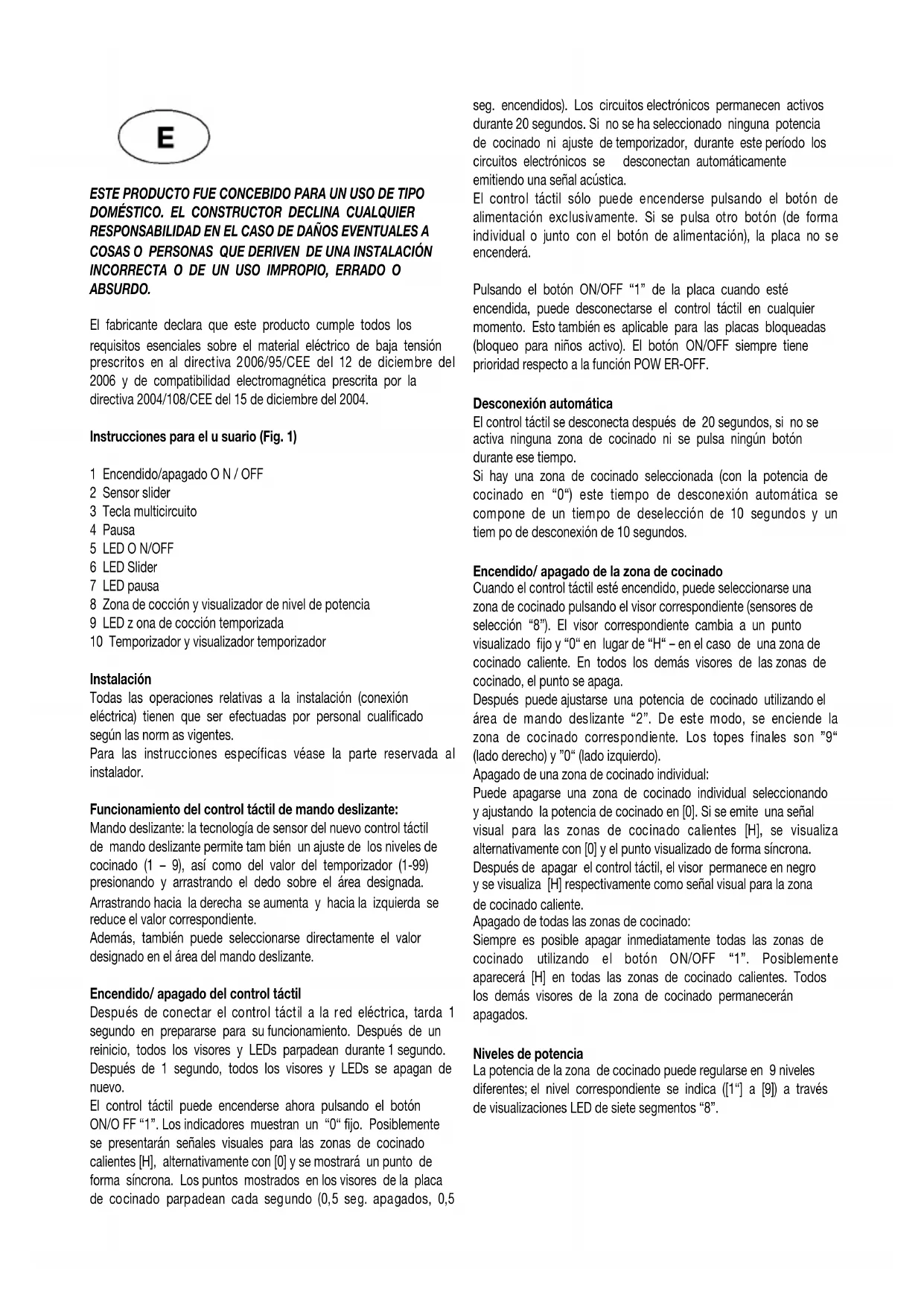 ESTE PRODUCTO FUE CONCEBIDO PARA UN USO DE TIPO DOMÉSTICO. EL CONSTRUCTOR DECLINA CUALQUIER RESPONSABILIDAD EN EL CASO DE DAÑOS EVENTUALES A COSAS O PERSONAS QUE DERIVEN DE UNA INSTALACIÓN INCORRECTA O DE UN USO IMPROPIO, ERRADO O ABSURDO.