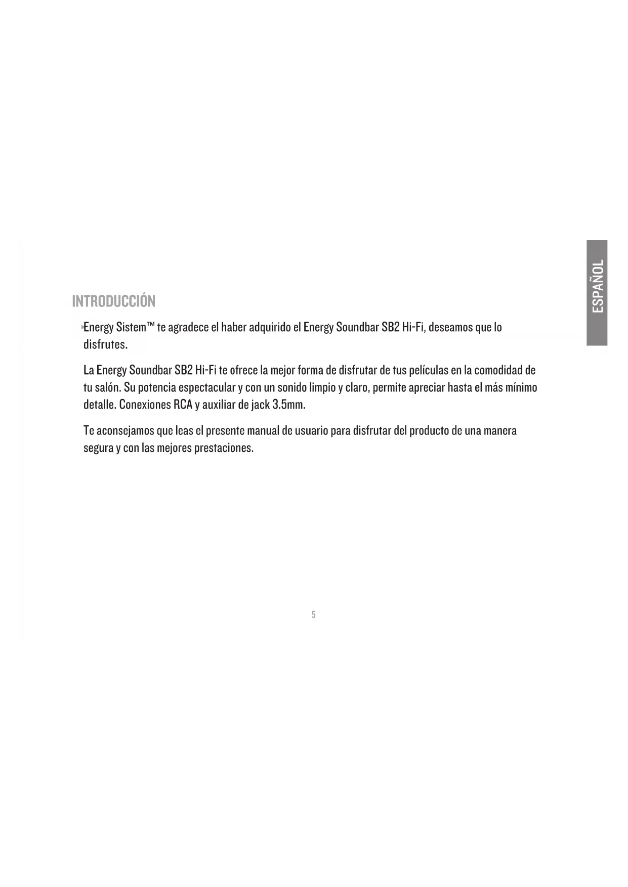 Energy Sistem™ te agradece el haber adquirido el Energy Soundbar SB2 Hi-Fi, deseamos que lo disfrutes.
