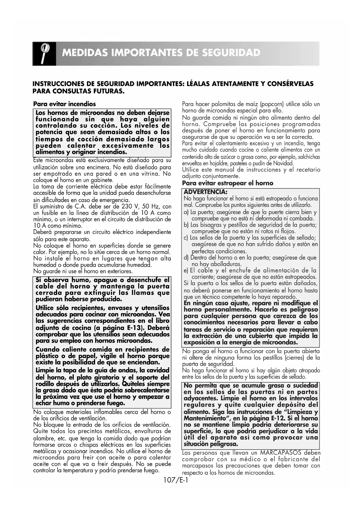 MEDIDAS IMPORTANTES DE SEGURIDAD . . . . .E-1-3