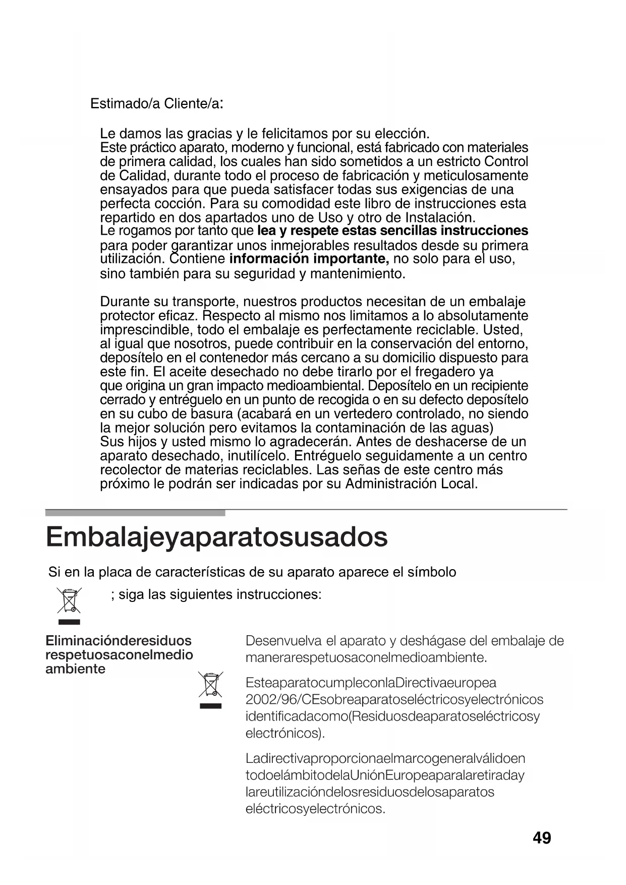 Le rogamos por tanto que lea y respete estas sencillas instrucciones