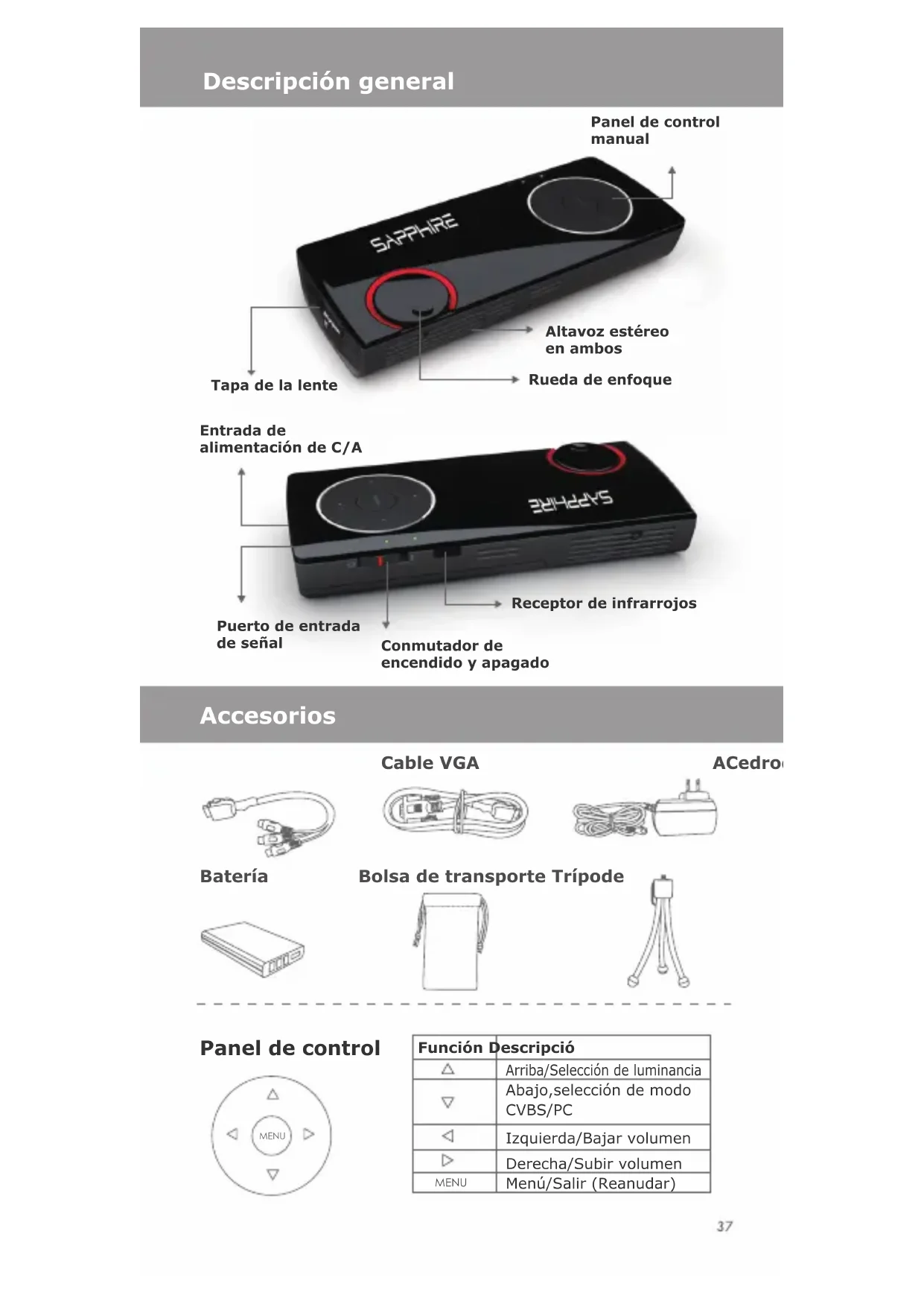 MANUAL DE USUARIO MiniProjector 101 SAPPHIRE