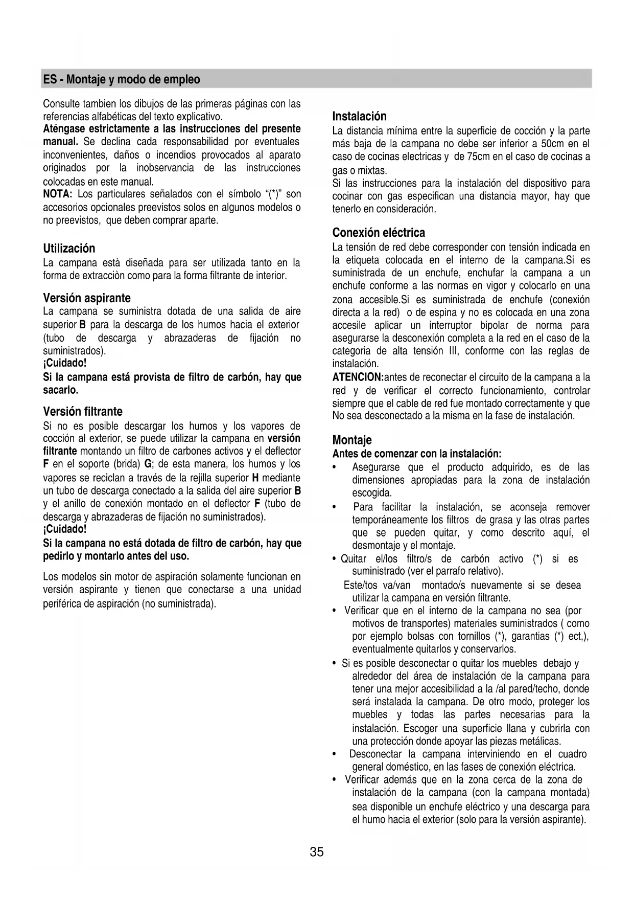 el humo hacia el exterior (solo para la versión aspirante).36