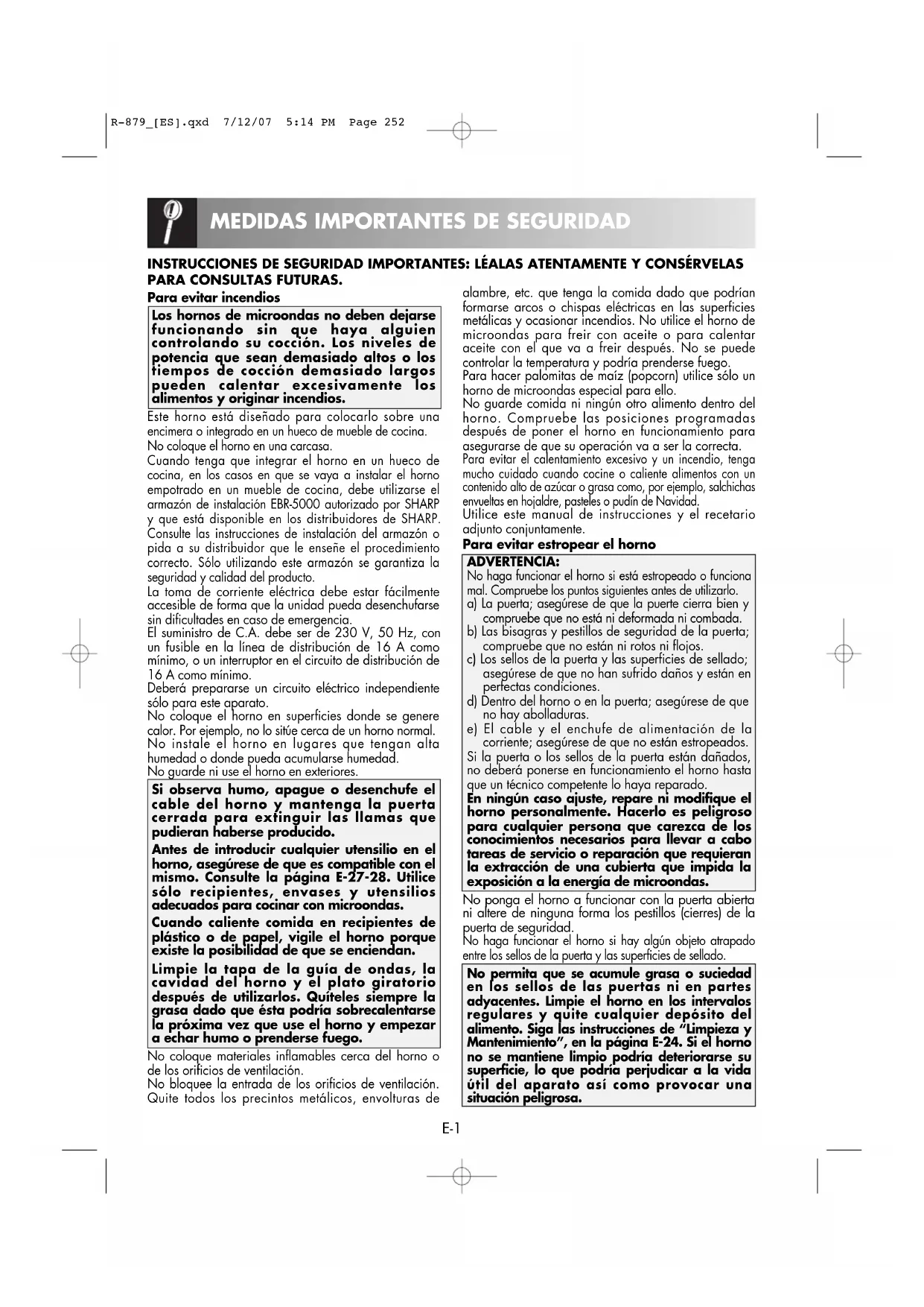 MEDIDAS IMPORTANTES DE SEGURIDAD . . . . . .E-1-2