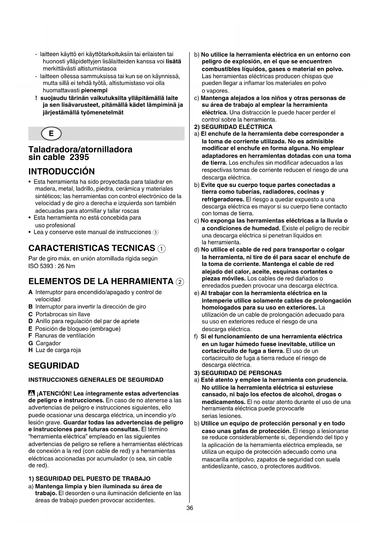 Taladradora/atornilladora sin cable 2395 INTRODUCCIÓN